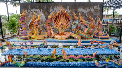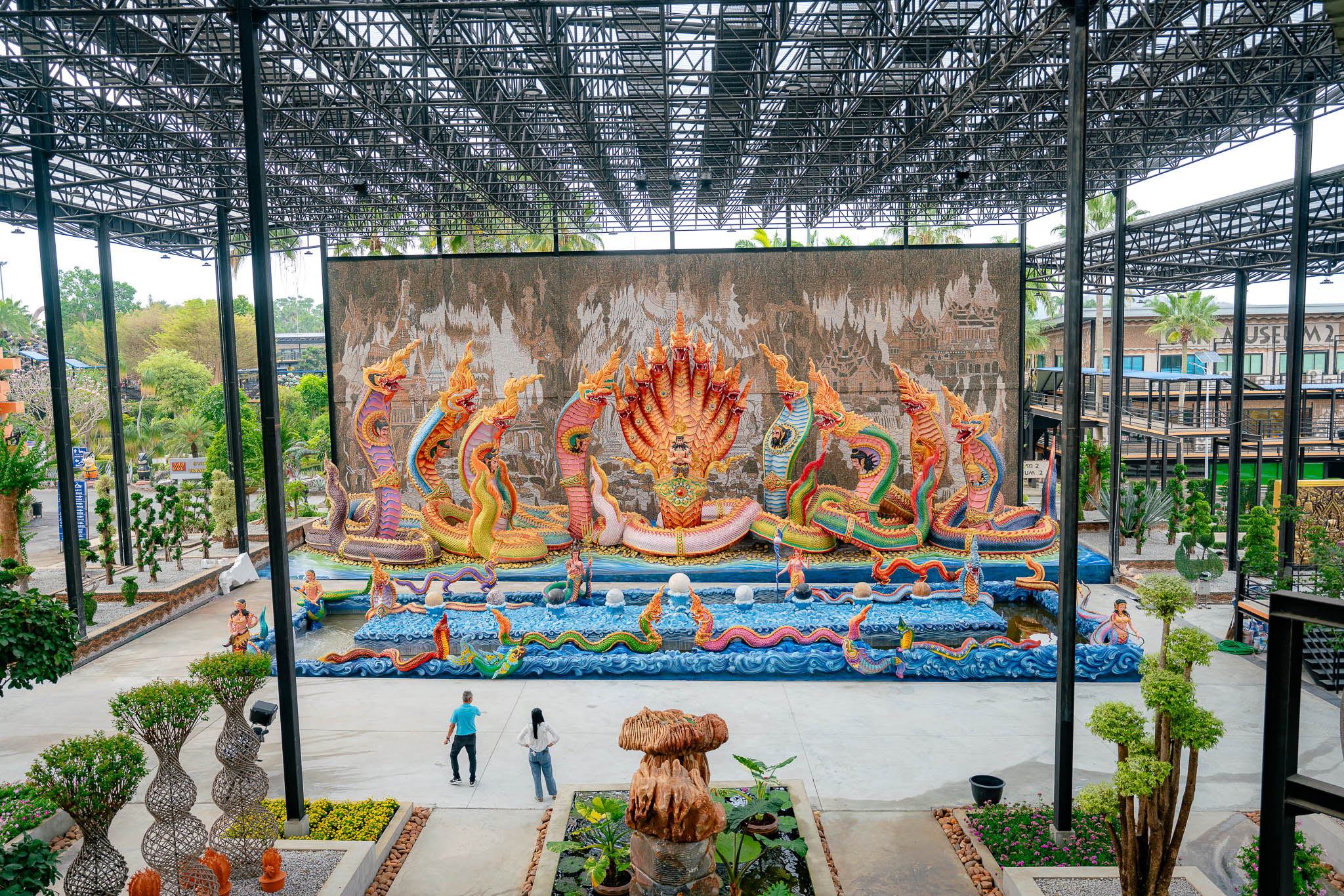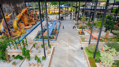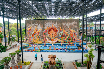 This garden stands out by the statues of the four royal families and the nine crystal balls. Built on September 10, 2023, completed on February 2, 2024, the construction period was 146 days. It is a garden that is auspicious. It is outstanding in its art and culture, beauty and grandeur with a height of 14 meters and is the first time that there are all 9 families of Nagas at Nong Nooch Garden Pattaya. Some Thai people believe that coming to worship the Naga will bring good luck. Or auspiciousness. In this regard, on February 10, 2024, there was a ceremony to worship 9 kings of the 4 Naga clans at this garden as well.