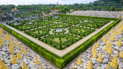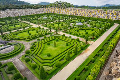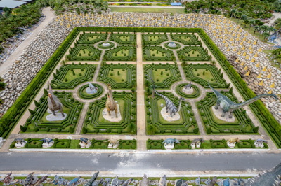 The French garden II is an extension of the area of the French garden I. This area also used to be a nursery. There are more than ten thousand vehicles of soils fill in this area. Moreover, the French garden II added many rocks to prevent a valley from collapsing, and it decorated to be geometric shapes by using a special tree. However, on the valley, we use the cycad, palm, and agave. Those plants grow well in this area.