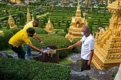 วันนี้ (14 ก.ค. 64) เวลา 09.00 น. นายกัมพล ตันสัจจา ประธานสวนนงนุชพัทยา พร้อมด้วยผู้บริหารสวนนงนุชพัทยา ได้ร่วมกันประกอบพิธีเปลี่ยน “ธงมนตรา” จาก ประเทศภูฎาน จำนวน 9 ผืน ซึ่งเป็นสัญลักษณ์แห่งโชคลาภ
