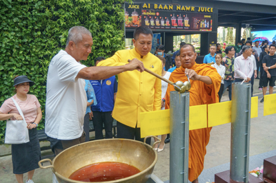 โดยภายในงาน ได้เปิดให้นักท่องเที่ยว ร่วมหล่อเทียนพรรษา ก่อนจะนำเทียนไปถวายให้แก่ 9 วัด ได้แก่ วัดญาณสังวรารามวิหาร,วัดสัตหีบ,วัดสามัคคีบรรพต,วัดนาจอมเทียน ,วัดอัมพาราม,วัดบางเสร่คงคาราม,วัดเขาคันธมาทน์,วัดหนองจับเต่า และวัดทรัพย์นาบุญญาราม เพื่อเป็นกุศลทานต่อไป