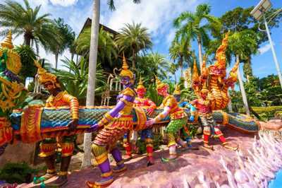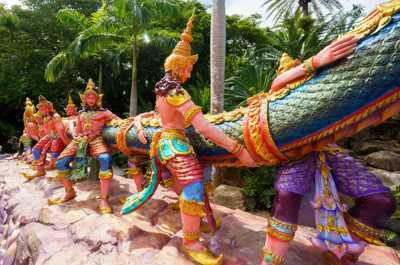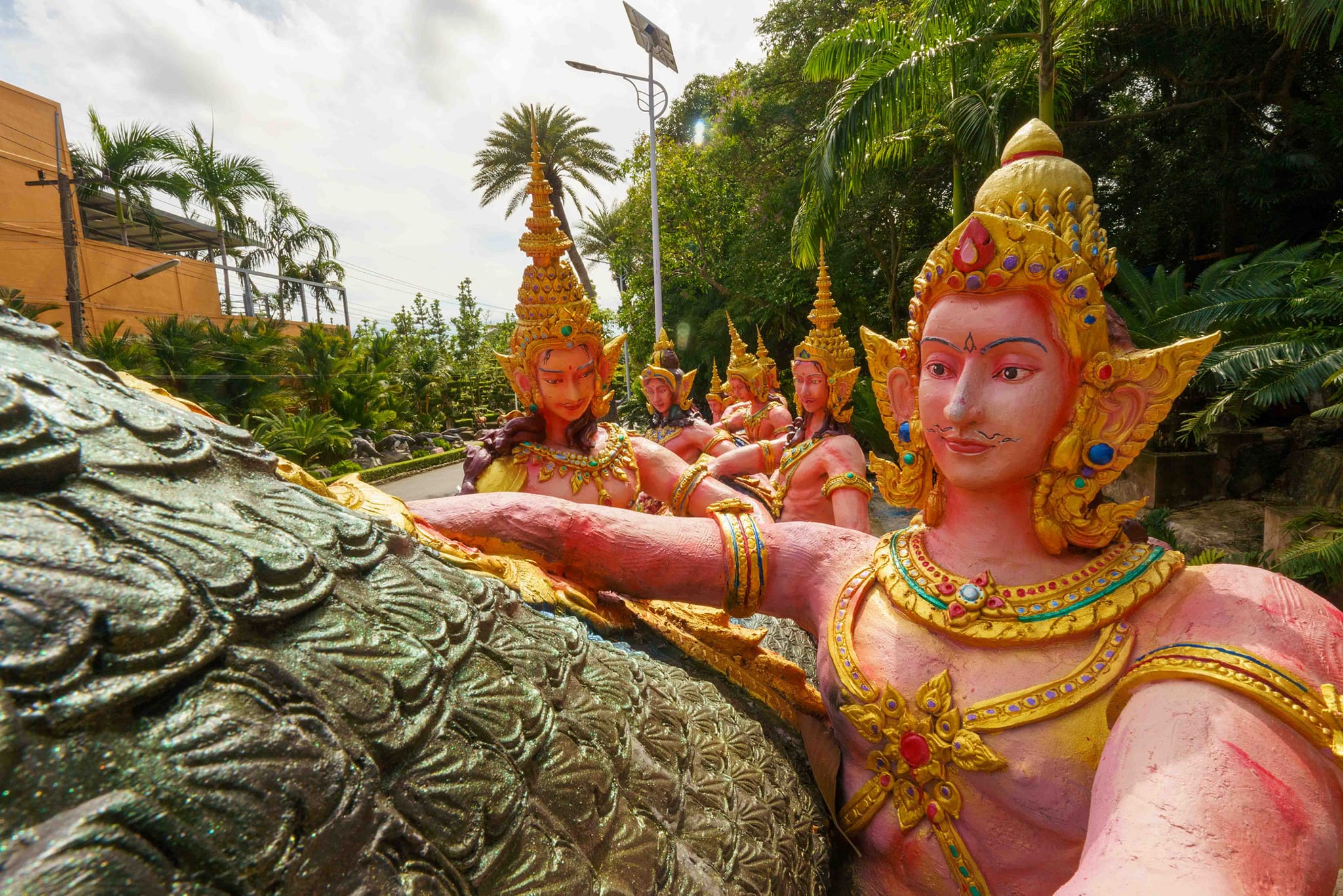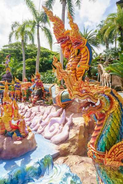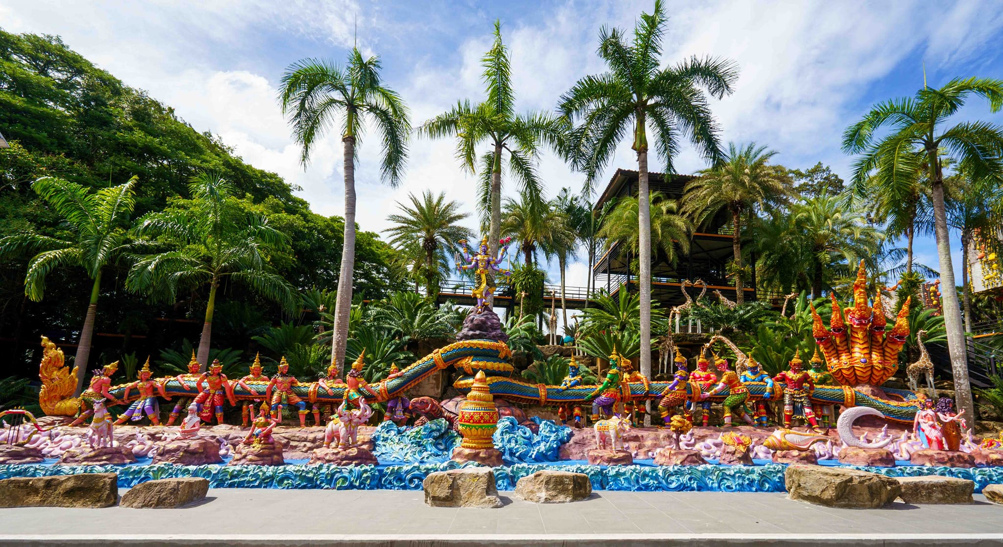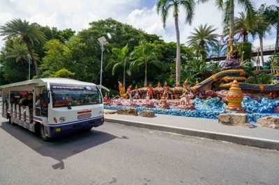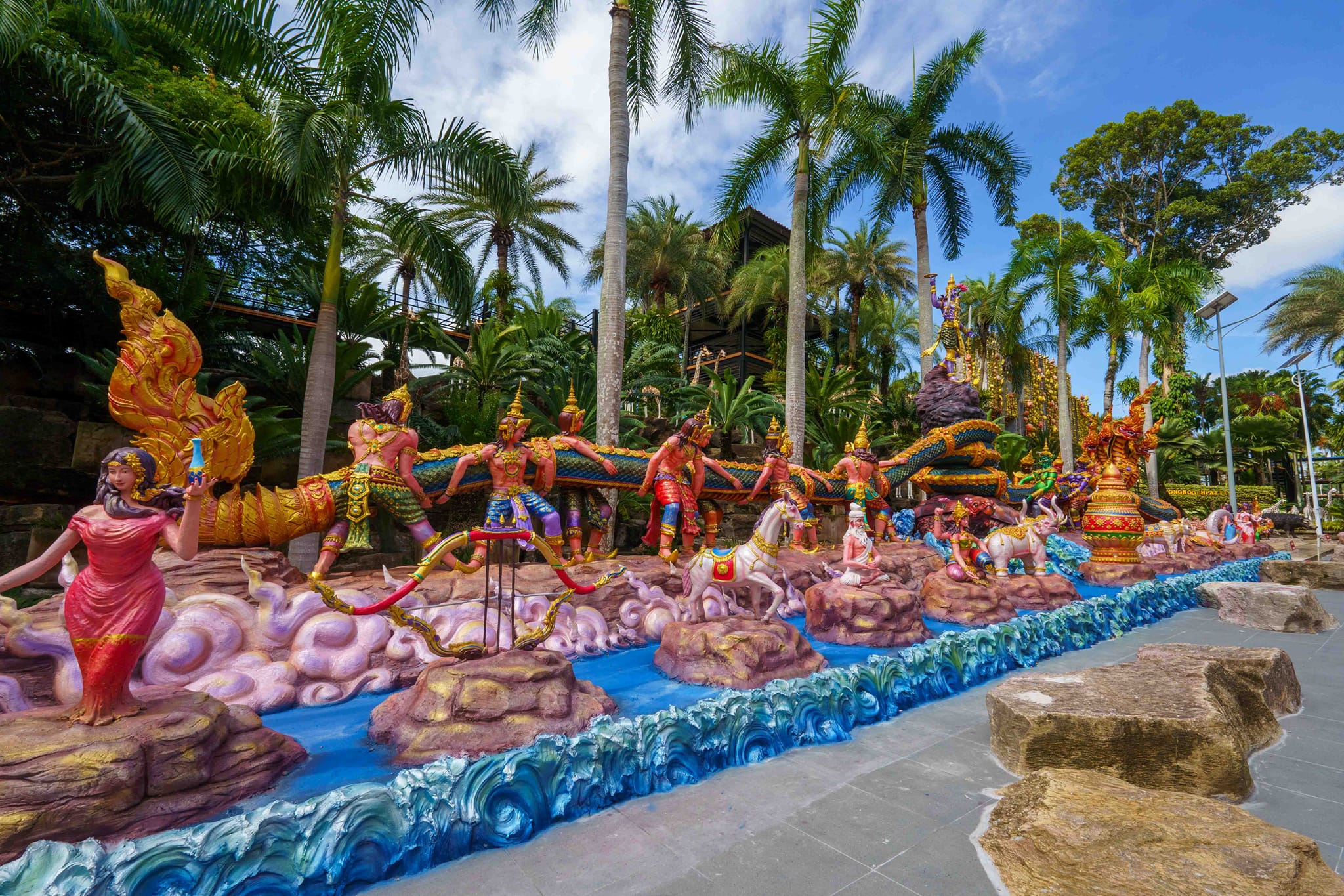 ประติมากรรมปูนปั้น "กวนเกษียรสมุทร" อยู่ระหว่างตรงข้ามกับสวนไม้ดัดไทย ท่านใช้บริการนั่งรถชมสวนรถจะวิ่งผ่านจุดนี้อยู่แล้ว