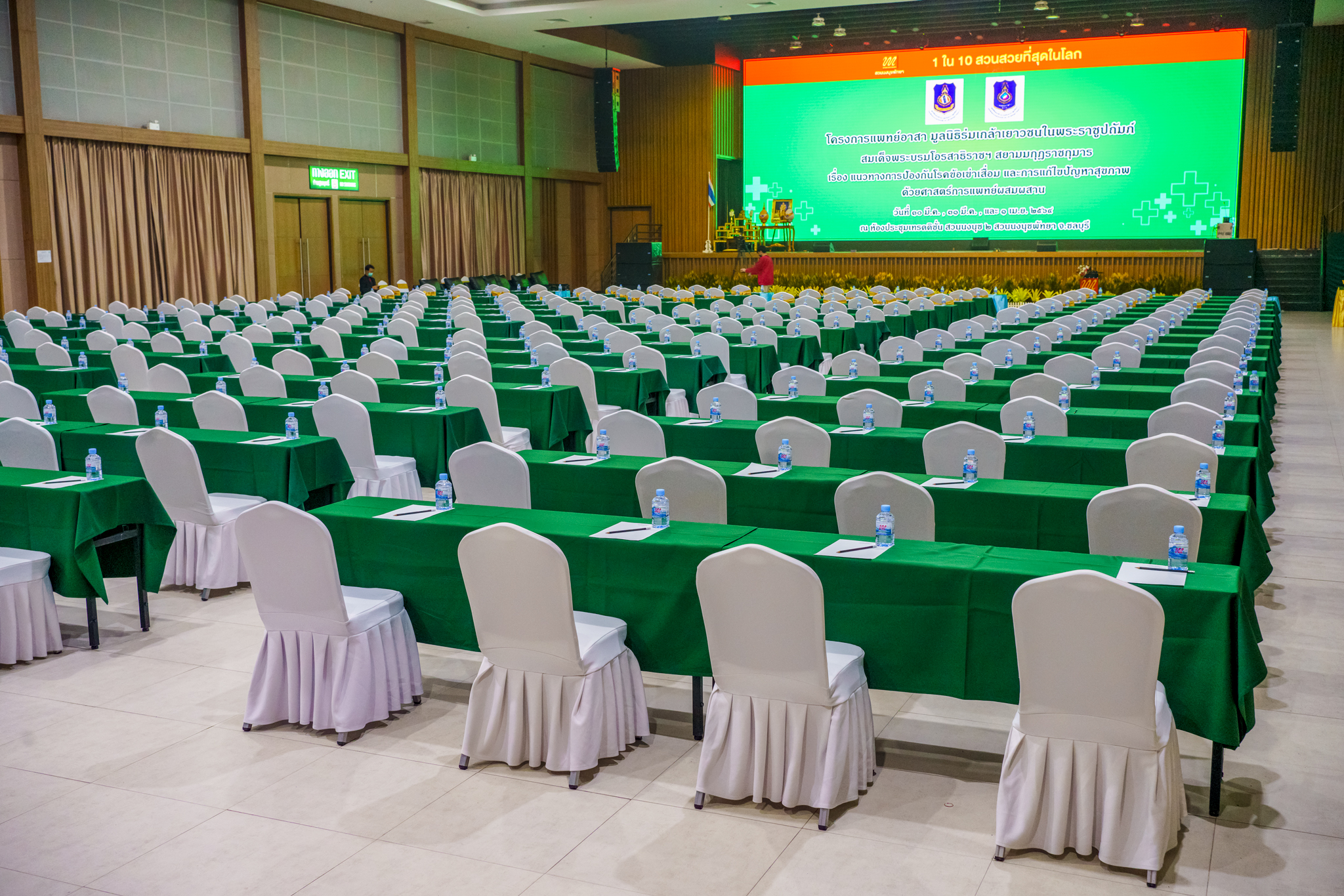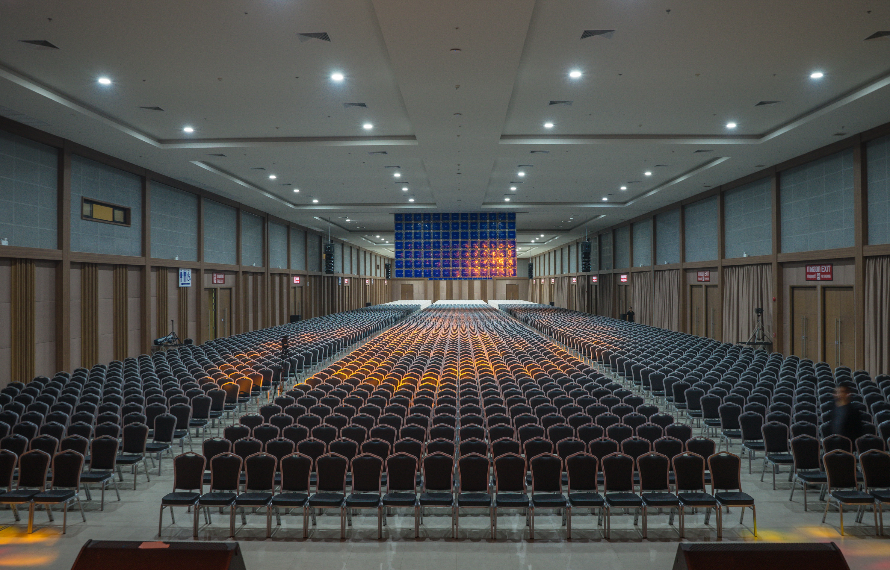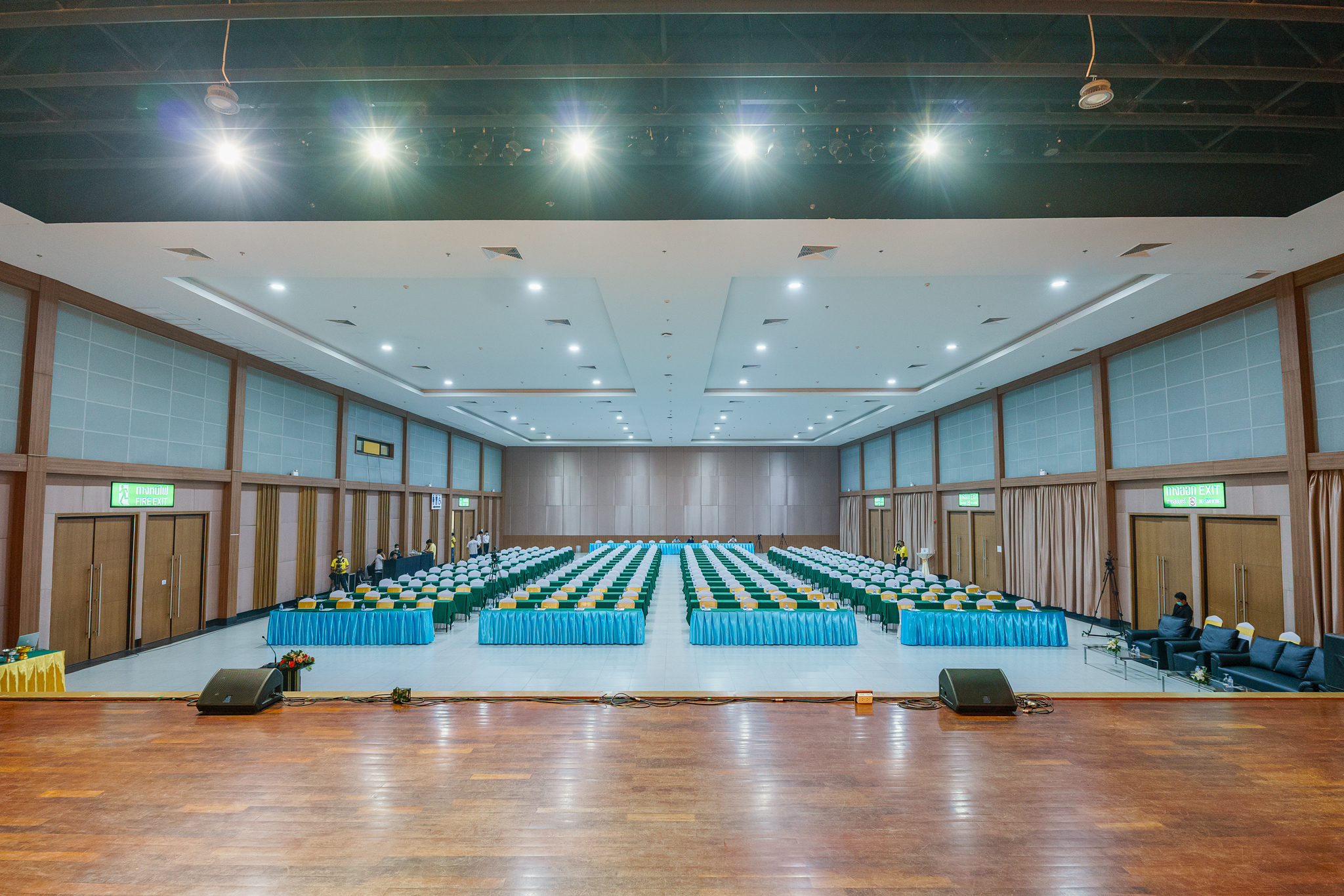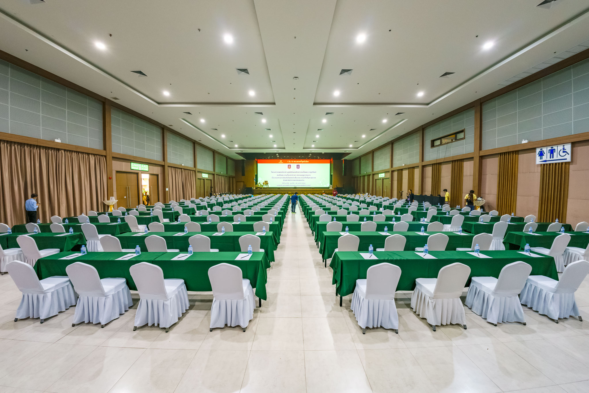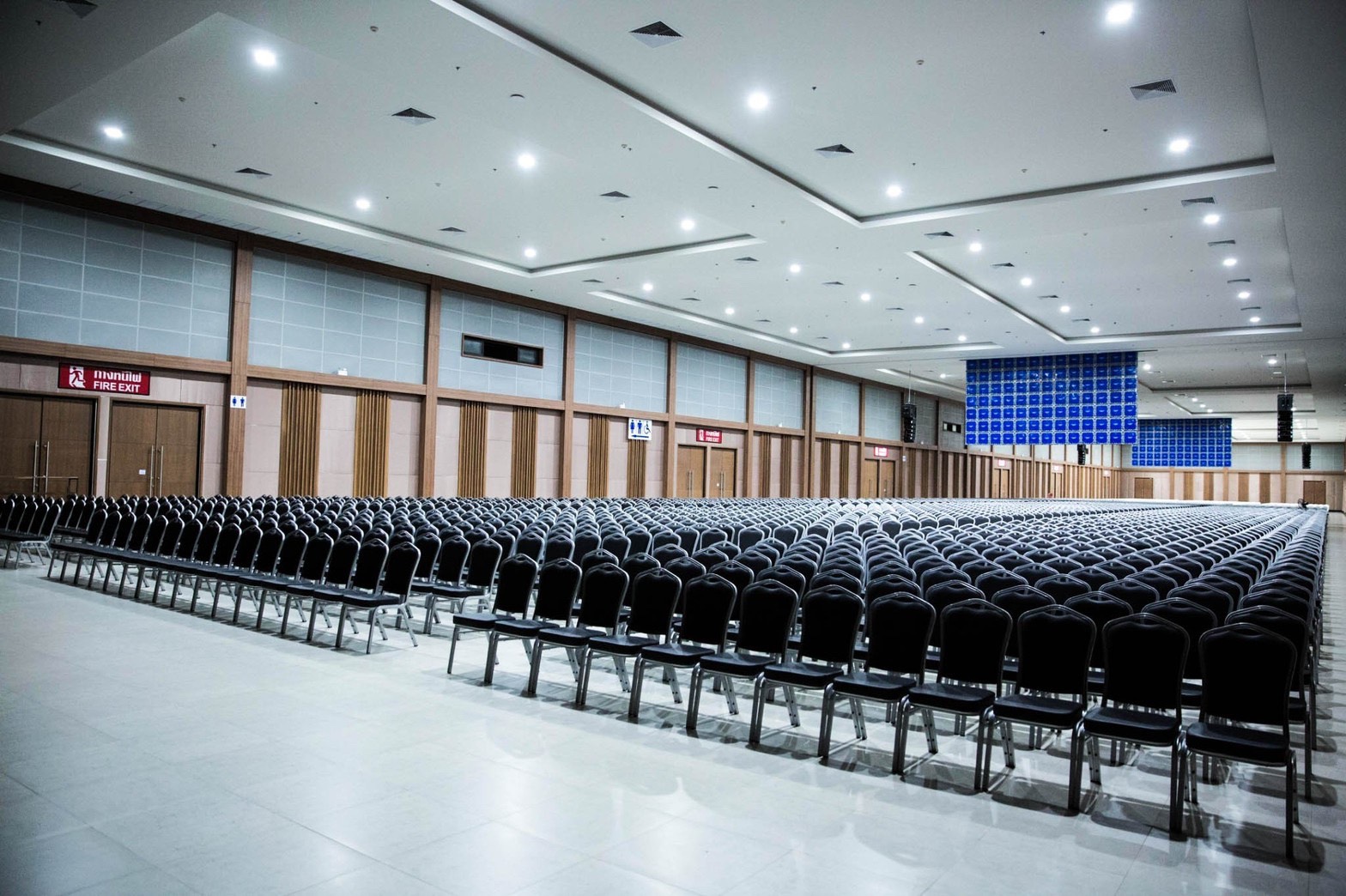 3 interconnected exhibition hall with a combined space of 3,168 square meters and 8 meters of a ceiling height. These halls can accommodate people for more than 5,000  people and can arrange in theatre style. Most importantly, these halls have sound proof removable divider. This feature helps support our customers to be more independent and feel flexibility to use our service for their events and activities