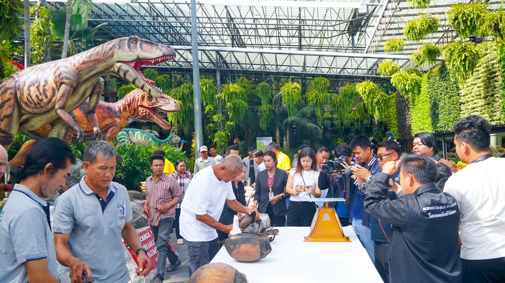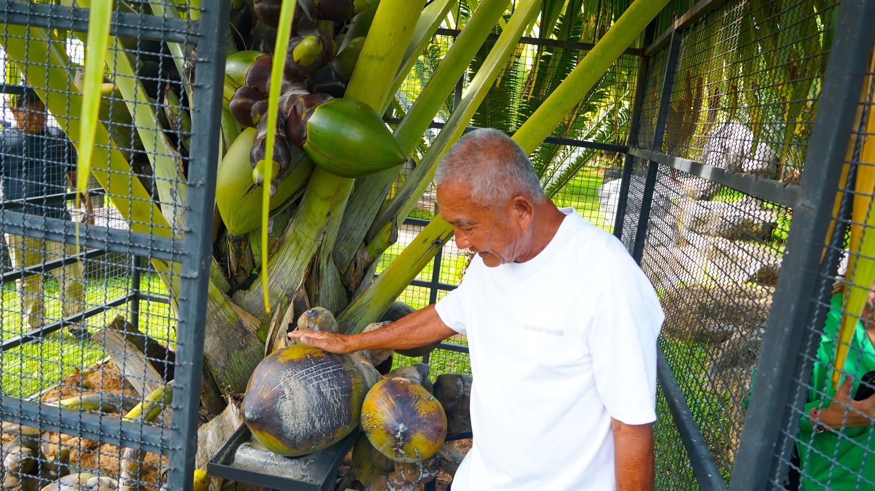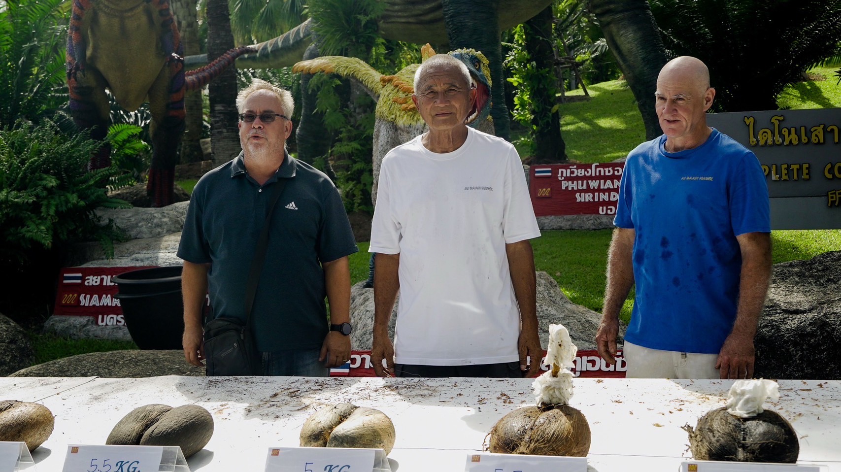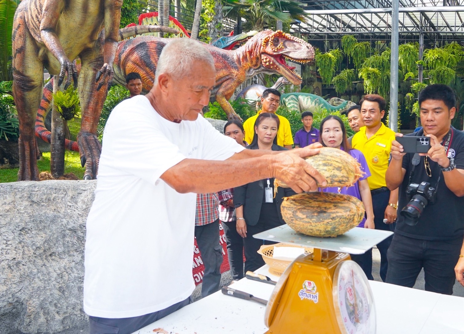 Mr. Kampon stated that in nature, Coco de Mer takes up to 60 years to bear fruit, with an additional 7 years for the fruit to fully ripen, and another 2 years to produce a seedling. However, through the dedicated care of the Nongnooch's team, the life cycle has been accelerated, enabling the trees to bear fruit in no more than 30 years. In some cases, such as this harvest, a single fruit may contain multiple seeds, including twin seeds, which is a remarkable phenomenon that underscores the success of conserving and restoring rare plant species.