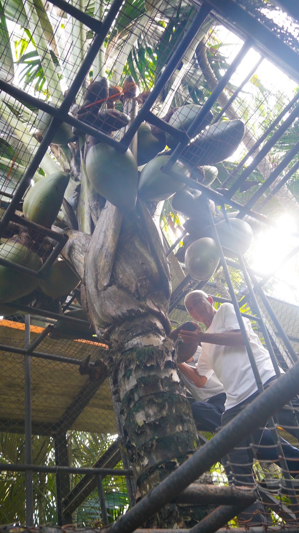 On July 17, 2025, at 9:00 AM, Mr. Kampon Tansacha, President of Nongnooch Garden Pattaya, led a team of experts in harvesting 9 rare “Coco de Mer” fruits, one of which contained twin seeds, resulting in a total of 10 seeds. This is an extremely rare occurrence, with each seed valued at over 100,000 baht, making the total value of this harvest exceed 1 million baht.