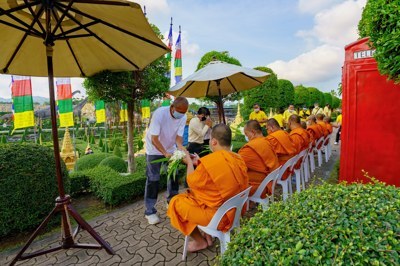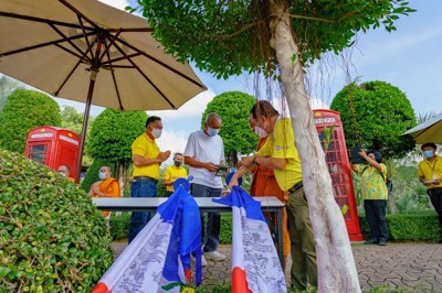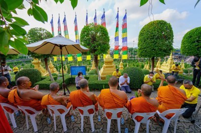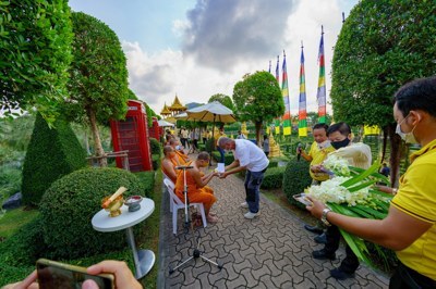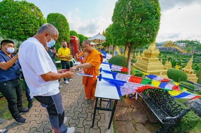 On Monday 28 December 2020 Mr. Kampon Tansacha, president of Nongnooch Pattaya garden along with the management of Nongnooch joined a ceremony thanking Bhutan for the 9 Montra flags. The Montra flags are a symbol of good fortune to dispel disease. We have placed the flags at the top of the pillar at the Thai Deva Pavillion in Nongnooch Pattaya garden. We invited Phra Kru Kasem Kittisophon (Afarn Joi) Abbot of Wat Samakkhibanphot who kindly came to perform the anointing ceremony of the Montra flags to show success, victory and prosperity without any disease to welcome the New Year 2021.