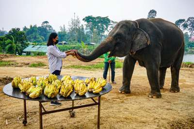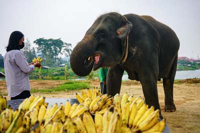 ลูกค้าใจบุญ สมทบทุน ซื้อกล้วยให้ ช้างตั้งครรภ์ “พังกอหญ้า"
