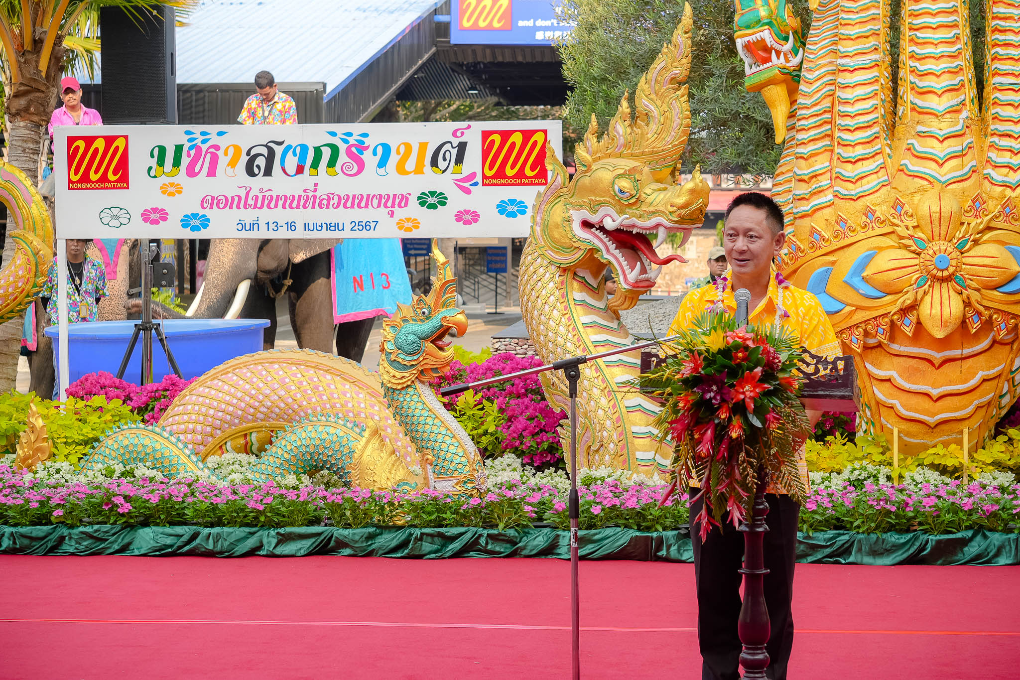 วันที่ 13 เมษายน 67 สวนนงนุชพัทยา นำโดยนายกัมพล ตันสัจจา ประธานสวนนงนุชพัทยา จัดงาน มหาสงกรานต์ ดอกไม้บาน ที่สวนนงนุช ”ประจำปี 2567 โดยมีนายภัควัต ขันธหิรัญ นายอำเภอสัตหีบ เป็นประธานและนางสาวอุไร มุกประดับทอง ผู้อำนวยการ ททท.สำนักงานพัทยา ร่วมเปิดพิธี ภายในงานมีขบวนแห่นางสงกรานต์ที่ยิ่งใหญ่สวยงามตระการตา พร้อมชุดการแสดงและชมลูกช้างรดน้ำดำหัวแม่ช้างจำนวน 4 คู่ ร่วมสรงน้ำพระพุทธรูป 9 วัด คู่บ้านคู่เมืองของไทย