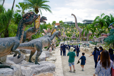 Therefore, he assigned his teams to create the dinosaur species continuously in the area of 25 rais. Currently, we have got more than 100 species of dinosaurs. However, the dinosaur area officially opened to the public in April 10, 2017 and named it as the Dinosaur Valley. We also add sound of dinosaurs to make the tourists feel more interesting and feel like staying in the dinosaur period.