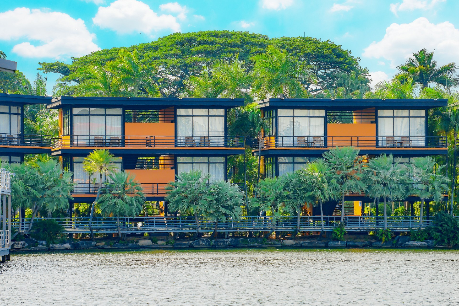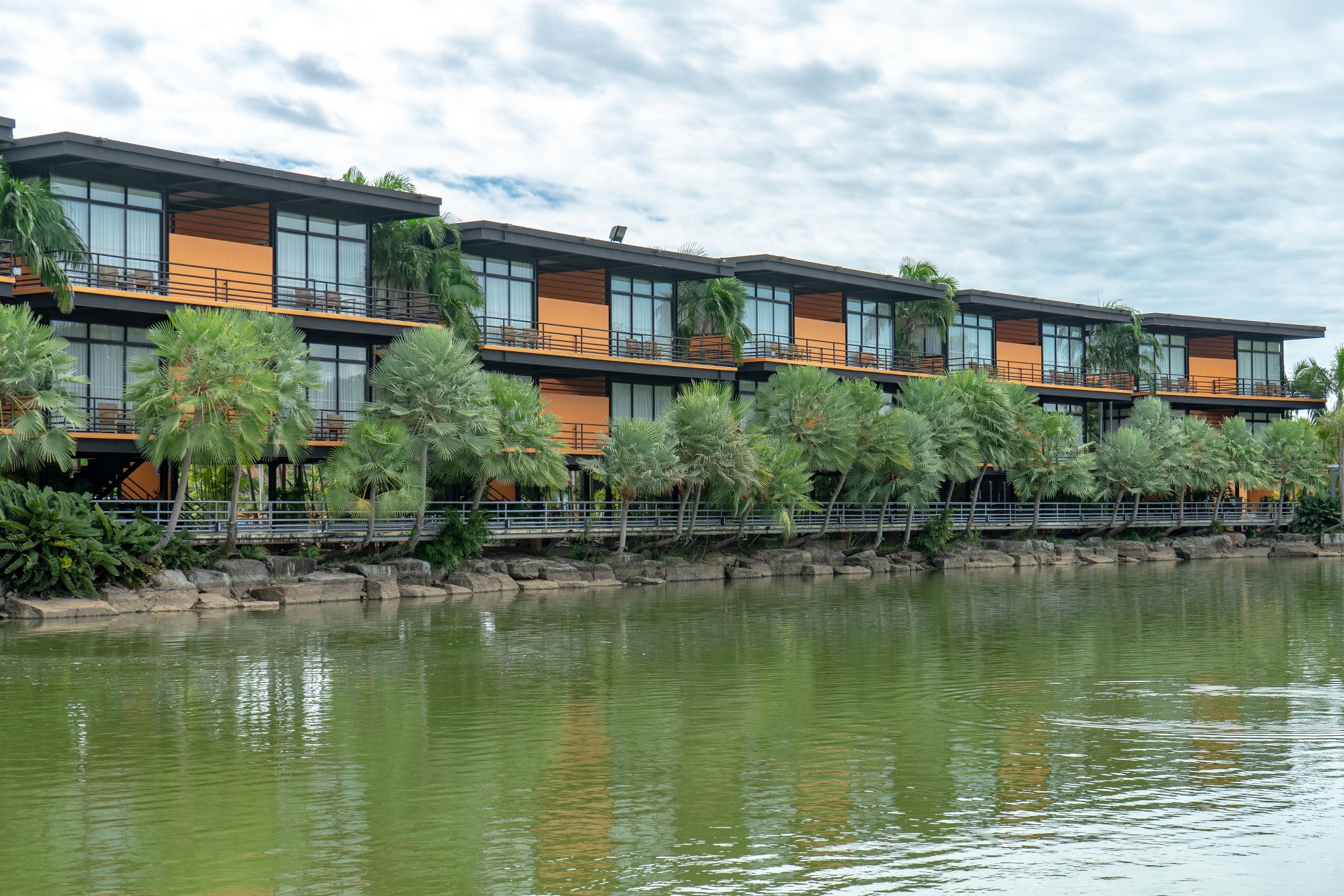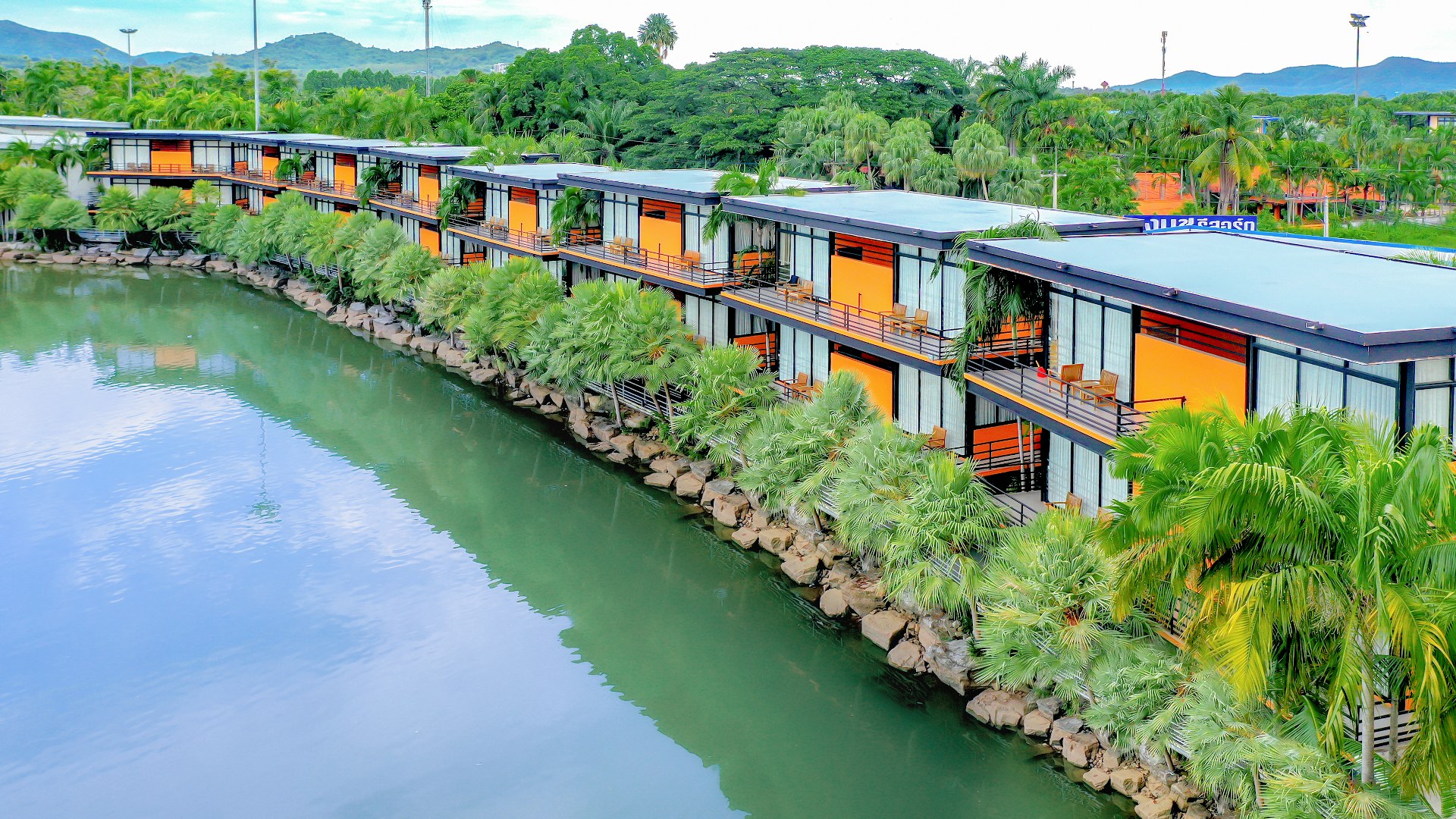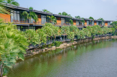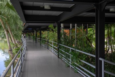 “Baan Rim Bueng” has a private balcony, and it consists of 8 buildings with 2 floors. It has the floating garden with variety of flowers. It is colorful flowers. The area is quiet. It is good for relaxing.