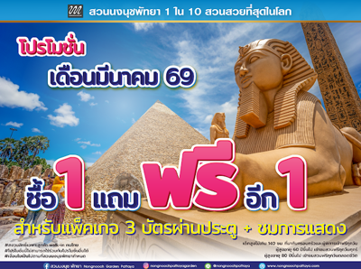 สวนนงนุชพัทยาจัดโปรโมชั่นแรงเดือนมีนาคม 69 “ซื้อ 1 แถมฟรีอีก 1” เอาใจคนที่พลาดโอกาสเดือนที่ผ่านมา