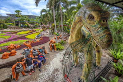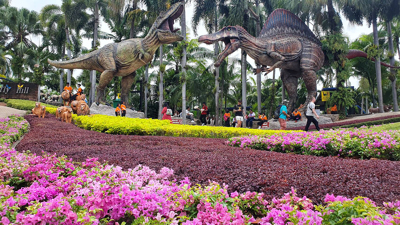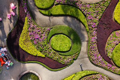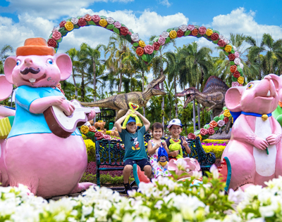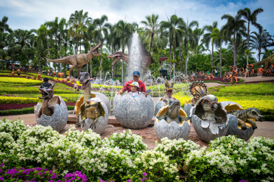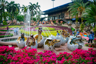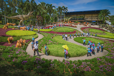 โดยมีแนวคิดจากความสวยงามของลายปีกผีเสื้อ จึงได้ทำการเนรมิตให้พื้นที่ว่างแห่งนี้เป็นสวนสวยลายปีกผีเสื้อในทันที ดอกไม้ตามฤดูกาลทุกชนิดที่มีอยู่ในสวนถูกนำมาตกแต่งจรรโลงให้กลายเป็นลายปีกผีเสื้อขนาดยักษ์ ซึ่งมีลวดลายสีสันสวยงามจากดอกไม้หลากสี พร้อมประดับด้วยประติมากรรมสัตว์ปูนปั้น เช่น สิงโต หมู ลิงอุรังอุตัง เสือเขี้ยวดาบ ลา และแพะภูเขาไว้ตามจุดต่างๆ