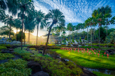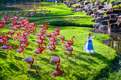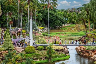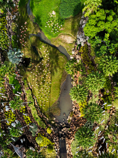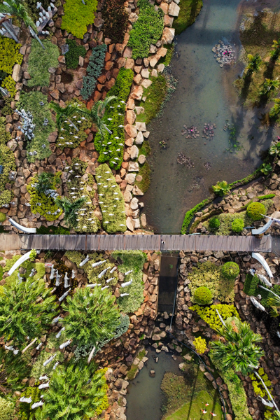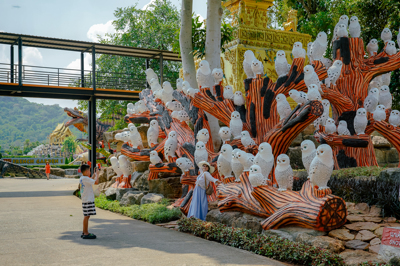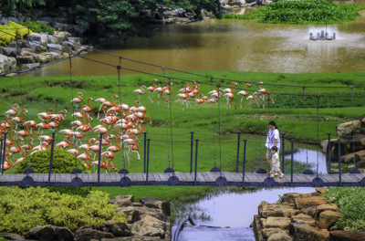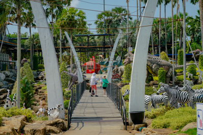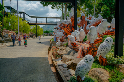 ในบริเวณสะพานเชือกได้มีการนำรูปปั้นสัตว์น่ารักๆ หลากหลายชนิดมาประดับไว้ เช่น เสือขาว ม้าลาย นกฮูก ลีเมอร์และจิงโจ้ พร้อมสายน้ำที่ไหลลงมาจากสวนฝรั่งเศส ทำให้สะพานเชือกแห่งนี้ ดูมีชีวิตชีวา เป็นจุดยืนชมวิวที่มีความสวยงามและเป็นจุดสำคัญที่นักท่องเที่ยวจะต้องมาให้ได้