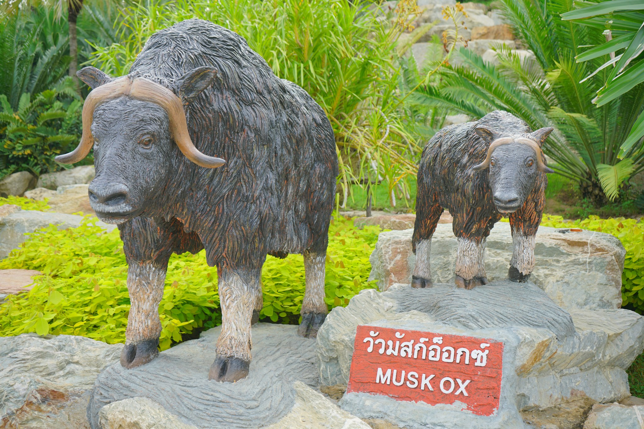 วัวมัสก์อ็อกซ์ วัวมัสก์อ็อกซ์ (Musk ox) เป็นสัตว์เลี้ยงลูกด้วยนมขนาดใหญ่ที่กระจายพันธุ์อยู่ในแถบอาร์กติก ในเขตพื้นที่แคนาดา กรีนแลนด์ สวีเดน ไซบีเรีย นอร์เวย์ และอลาสก้า ตัวโตเต็มที่หนักเฉลี่ย 285 กิโลกรัม มีขนที่หนามากเพื่อช่วยให้พวกมันอยู่รอดในสภาพอากาศที่หนาวเย็น ด้วยขนที่หนานี้จึงทำให้พวกมันดูมีขนาดใหญ่ และเมื่อเทียบกับกระทิง พบว่ากระทิงมีน้ำหนักมากกว่าวัวมัสก์อ๊อกซ์ ถึง 2 เท่า โดยทั่วไปแล้วจะกินหญ้า มอสและไลเคนเป็นอาหาร