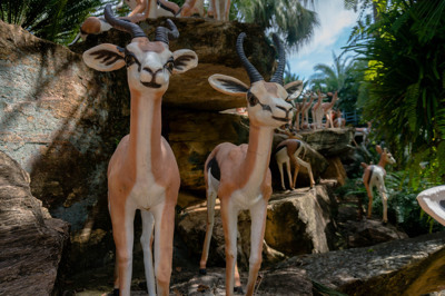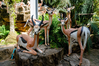 สปริงบ็อก Spingbok พบกระจายพันธุ์เฉพาะในแอฟริกาตอนใต้แถบลุ่มแม่น้ำแมเบซีเท่านั้น ตัวผู้มีเขาโค้งเป็นรูปตัววี ตัวเมียมีเขาเช่นกันแต่มีขนาดเล็กและสั้นกว่าตัวผู้ อายุขัยเฉลี่ยประมาณ 10 ปี เป็นสัตว์ที่ชอบรวมตัวกันเป็นฝูงในทุ่งหญ้าและกินหญ้าเป็นอาหาร