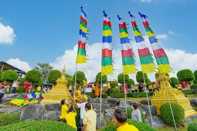 ทุกๆ 6 เดือน สวนนงนุชพัทยา จะได้รับมอบธงมนตราผืนใหม่จากสถานทูตภูฏาณประจำประเทศไทย เพื่อเปลี่ยนแทนธงผืนเก่าที่สีซีดจาง ขาดชำรุดตามกาลเวลา และจะประกอบพิธีอัญเชิญธง ขึ้นสู่ยอดเสาโดยคณะสงฆ์ทุกครั้งที่ประกอบพิธีเปลี่ยนธงมนตรา