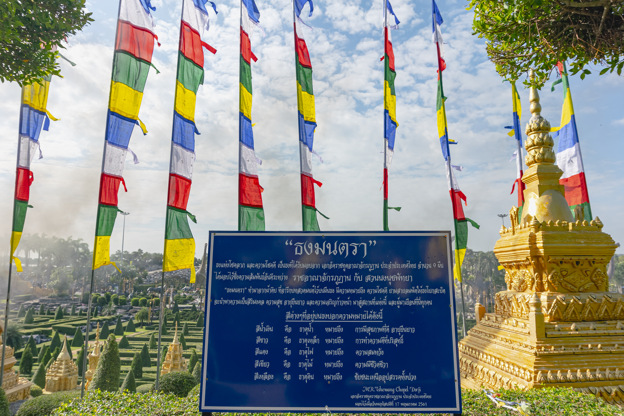 ดังนั้นนักท่องเที่ยวที่ได้มีโอกาสเข้ามาท่องเที่ยวยังสวนนงนุชพัทยา นอกจากจะได้เข้าชมความสวยงามของสวนนงนุชพัทยาอย่างหลากหลายแล้ว ยังจะได้รับสิ่งดีๆ มาสู่ชีวิตกลับไปบ้านอีกด้วย อีกทั้งธงมนตรานั้นยังถือเป็นสัญลักษณ์ของศาสนาพุทธ ประจำประเทศภูฏาน ที่นำมาประดิษฐาน ณ สวนนงนุชพัทยาแห่งนี้