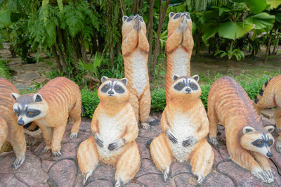 แรคคูน Raccoon เป็นสัตว์เลี้ยงลูกด้วยนม มีความยาวลำตัวราว 2 ฟุต มีหางเป็นพวง มีแถบสีดำคาดเป็นปล้องๆ ขนสีน้ำตาลปนเทา ใบหน้าสีขาวมีแถบสีดำคาดจากตาเป็นแถบตลอดแก้ม เป็นสัตว์กระจายพันธุ์ไปทั่วในทวีปอเมริกาเหนือและอเมริกากลาง กินอาหารได้หลายประเภทเช่นเนื้อสัตว์และพืช ปรับตัวเข้ากับสภาพแวดล้อมได้ง่าย อาศัยอยู่ใกล้พื้นที่ชุ่มน้ำ แต่ไม่สามารถว่ายน้ำได้