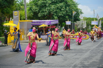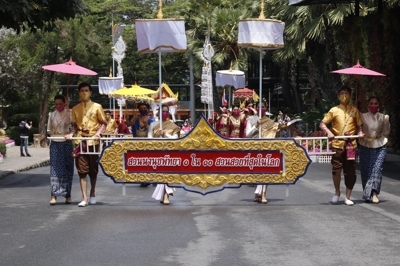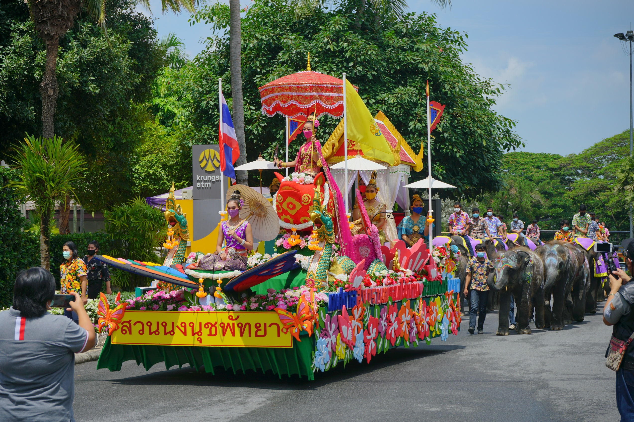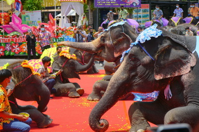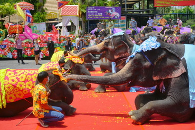 โดยมีขบวนแห่นางสงกรานต์ที่สวยงามตระการตาในชื่อชุด"ประเพณีศรีสงกรานต์" พิธีสรงน้ำพระพุทธรูป 9 วัด คู่บ้านคู่เมืองของไทย พร้อมนำลูกช้าง 3 คู่ รดน้ำดำหัวแม่ช้าง โดยใช้กลีบดอกไม้เป็นสัญลักษณ์ในการแสดงความเคารพ สร้างความประทับใจแก่นักท่องเที่ยว ถือเป็นการสืบสานประเพณีอันดีงามของประเทศไทยให้ประจักษ์สู่สายตานักท่องเที่ยวทั่วโลก