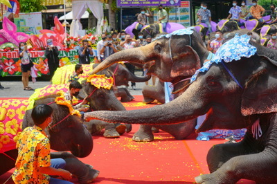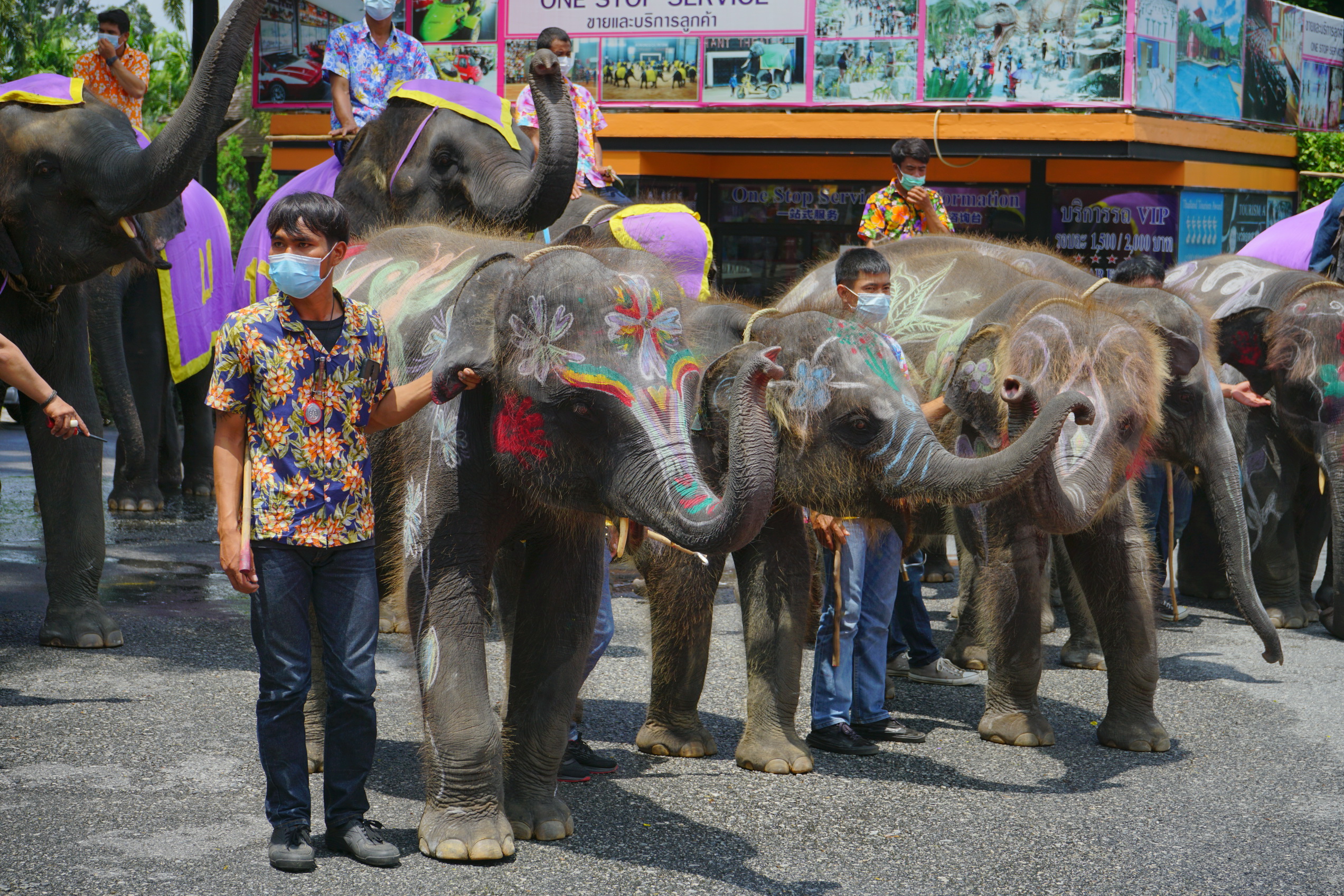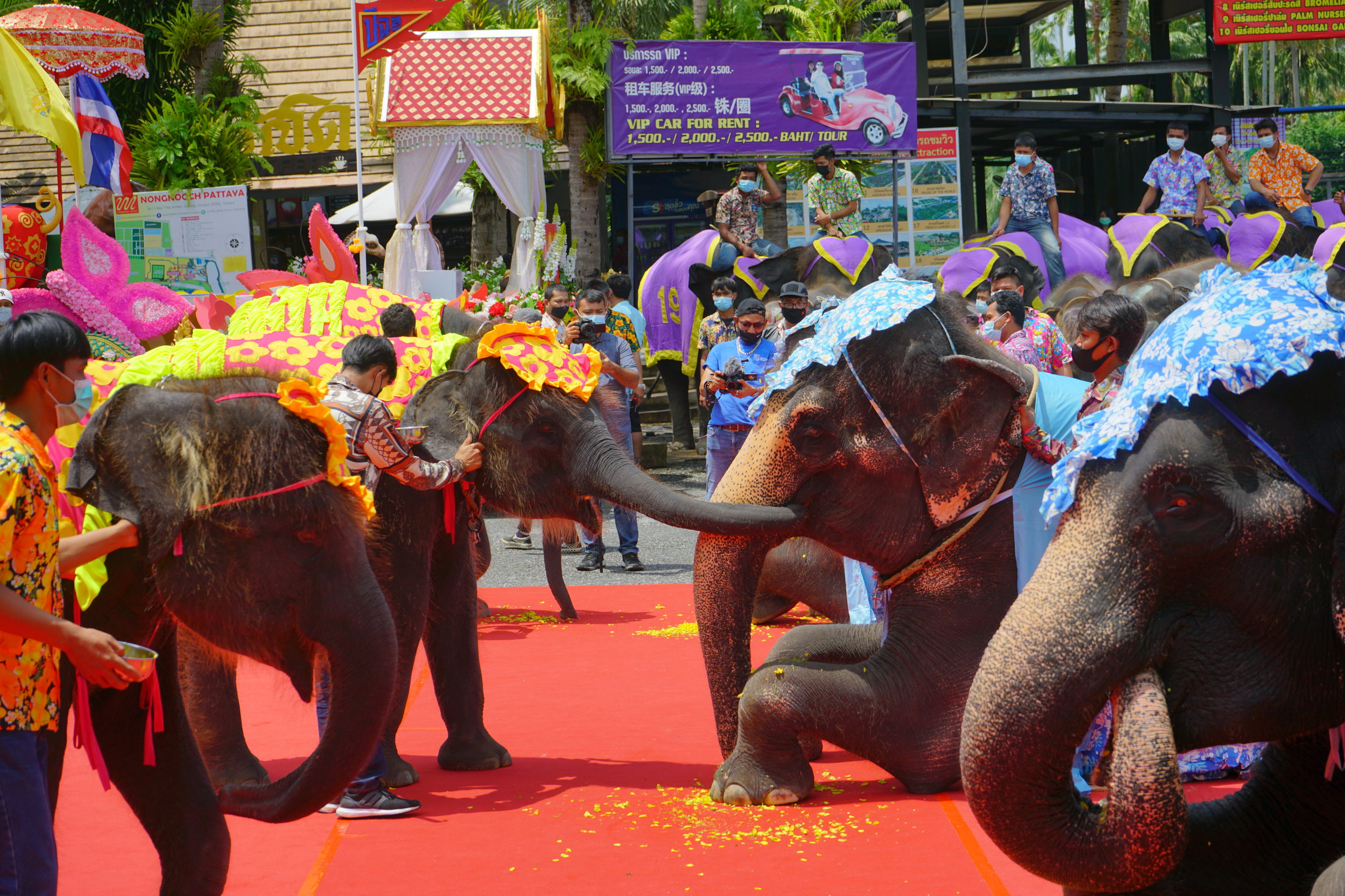 เริ่มแล้วเทศกาลสงกรานต์ สวนนงนุชพัทยา นำน้องช้าง 3 คู่ รดน้ำดำหัวแม่ช้าง สืบสานประเพณีไทย ภายใต้มาตรการป้องกันโควิด-19  “ ริน รด  พรม ” ใส่หน้ากากไม่สาดน้ำ