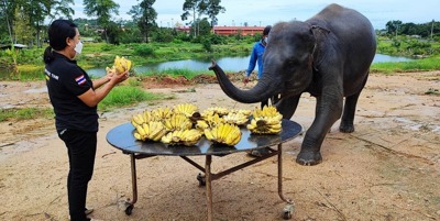ในวันอังคาร ที่ 13 ตุลาคม 2564 มีลูกค้า 3 ท่านร่วมกันบริจาคเงิน ซื้อกล้วยให้ช้าง คุณจุติมณฑ์ จตุทองจำนวน 300 บาท, คุณชะบา แสนอินทร์ จำนวน 149 บาทและคุณสาคร เรืองแก้ว จำนวน 200 บาท รวมเป็นเงิน 649 บาท