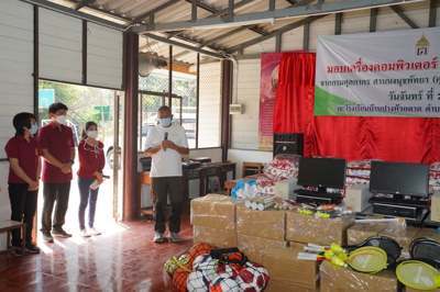 ด้วยเหตุนี้โครงการมอบอุปกรณ์และทุนการศึกษาแก่นักเรียนเพื่อช่วยเหลือนักเรียน โดยมีทุนการศึกษาจัดสรรให้กับเด็กนักเรียนทั้งหมดทุกคน เป็นทุนชั้นอนุบาล 37 ทุน ชั้นประถม 85 ทุน ชั้นมัธยม 24 ทุน รวมทั้งสิ้น 146 ทุน และอุปกรณ์คอมพิวเตอร์และอุปกรณ์กีฬาจำนวนมาก เพื่อส่งเสริมและสนับสนุนการศึกษากับนักเรียน