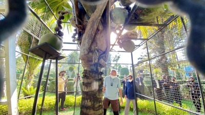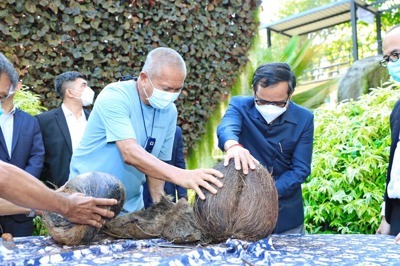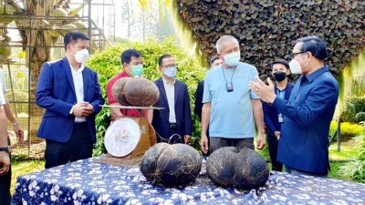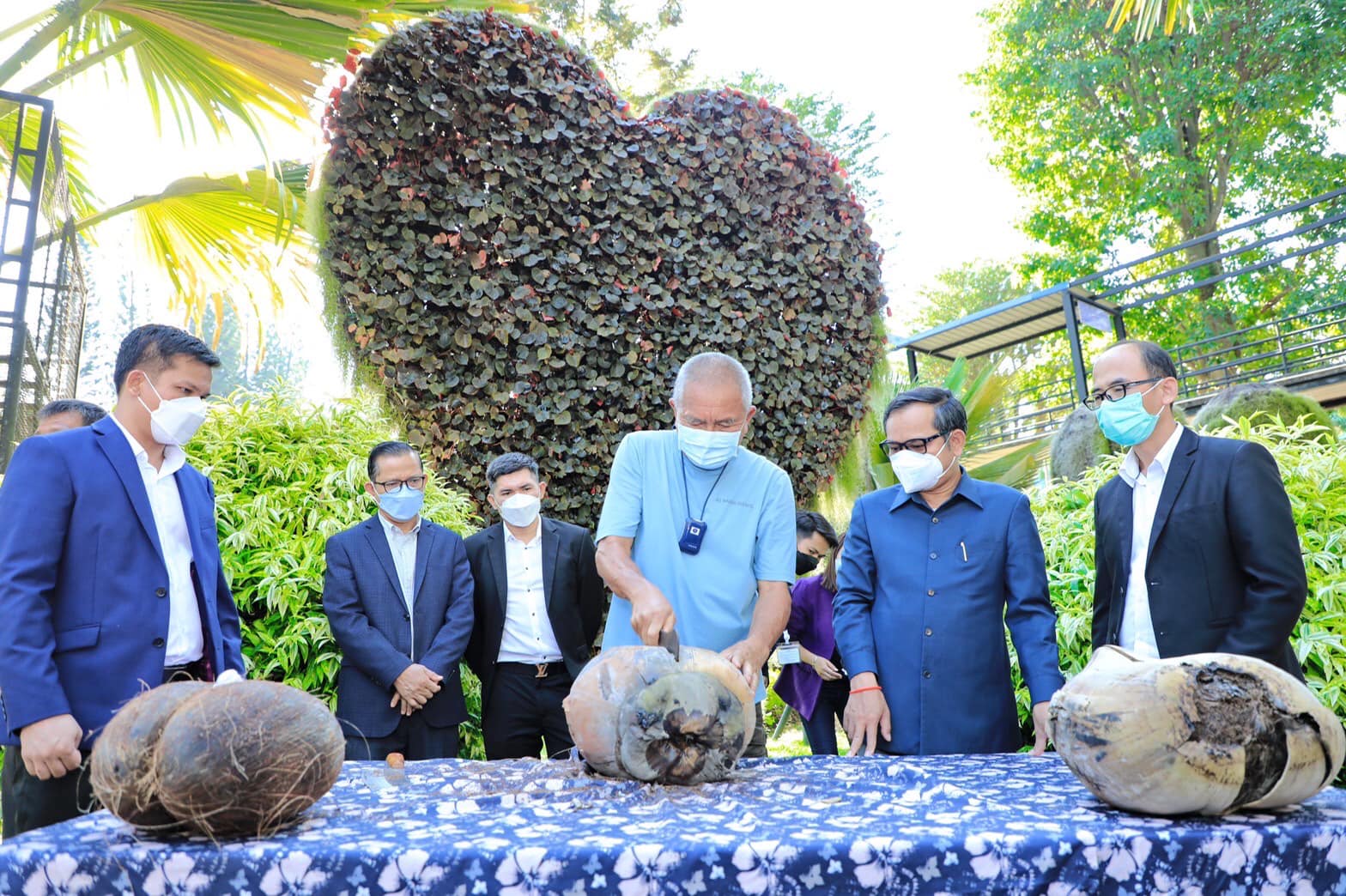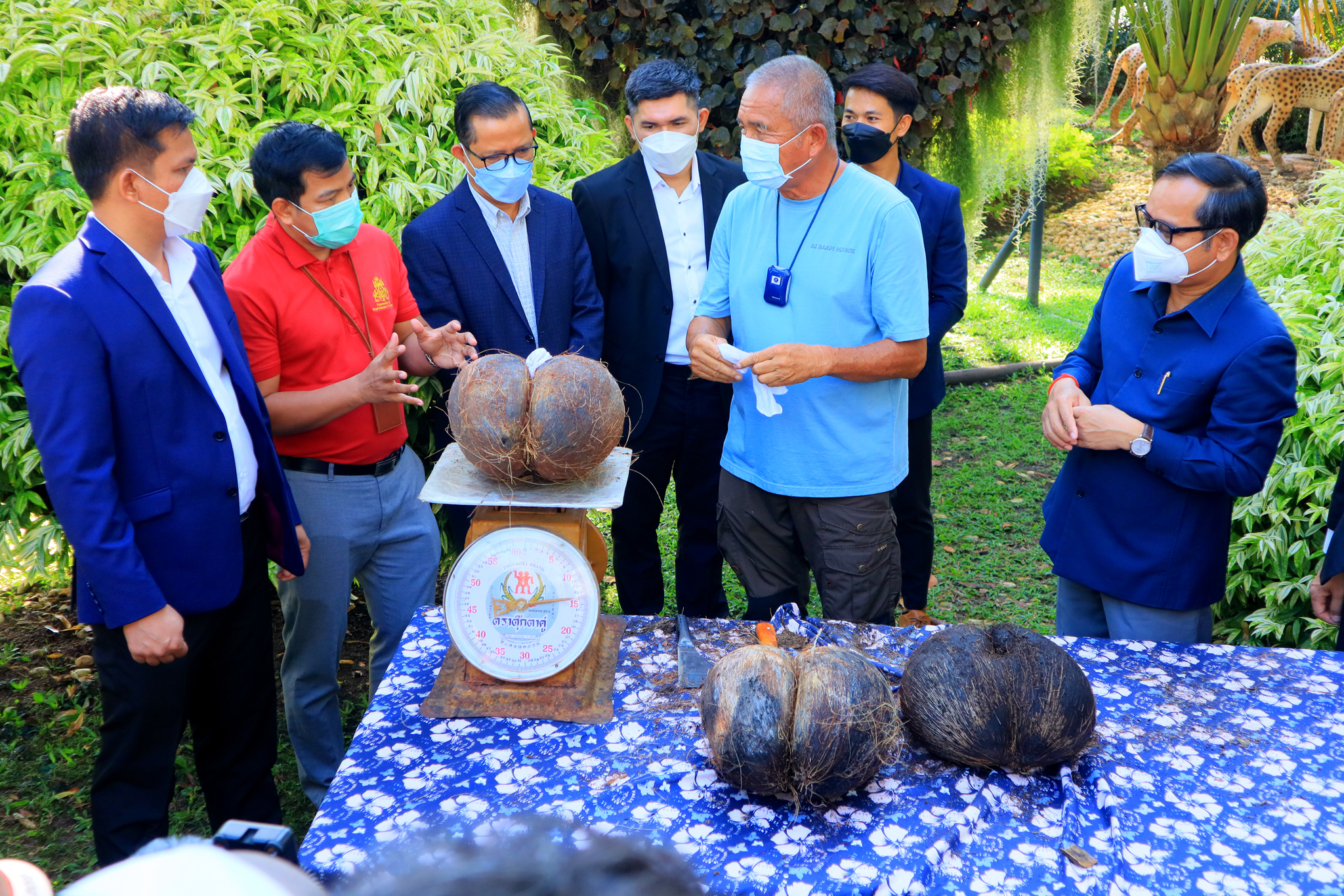 สวนนงนุชพัทยาโชว์ มะพร้าวทะเลสุกพร้อมกัน 3 ลูก หนักกว่า 10 กิโล โดยมีท่านทูตกัมพูชา เป็นเกียรติร่วมชม พร้อมเตรียมนำไปขยายพันธุ์