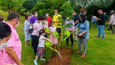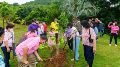 จากนั้นร่วมกันปลูกต้นจามจุรี ที่“สวนรุกขชาติ”บริเวณพื้นที่ราบเชิงเขาบันไดกฤษ เป็นสวนพฤกษศาสตร์ที่รวบรวมพันธุ์ไม้หายากสำหรับ“สวนรุกขชาติ” ทางสวนนงนุชพัทยาดำเนินการให้แก่ประเทศไทยโดยขออนุญาตเช่าพื้นที่จากกรมป่าไม้จำนวน43ไร่โดยค่าใช้จ่ายและค่าดำเนินการต่างๆสวนนงนุชเป็นคนดูแลทั้งหมด