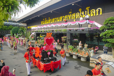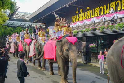 ในวันนี้สวนนงนุชพัทยา ได้จัดขบวนแห่ขันหมากขึ้น อย่างยิ่งใหญ่ โดยนำคู่สมรส 9 คู่แรก นั่งบนหลังช้างเพื่อร่วมขบวนแห่ขันหมาก สร้างความตื่นตา ตื่นใจให้กับคู่บ่าวสาวที่มาร่วมงาน และในกิจกรรมจดทะเบียนสมรสวันนี้ ทุกคู่ที่ร่วมกิจกรรม จะได้ขึ้นบนหลังช้างเพื่อรับทะเบียนสมรสทุกคู่ พร้อมกับรับของที่ระลึกเป็นไม้มงคล จากสวนนงนุชพัทยา ทุกคู่