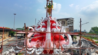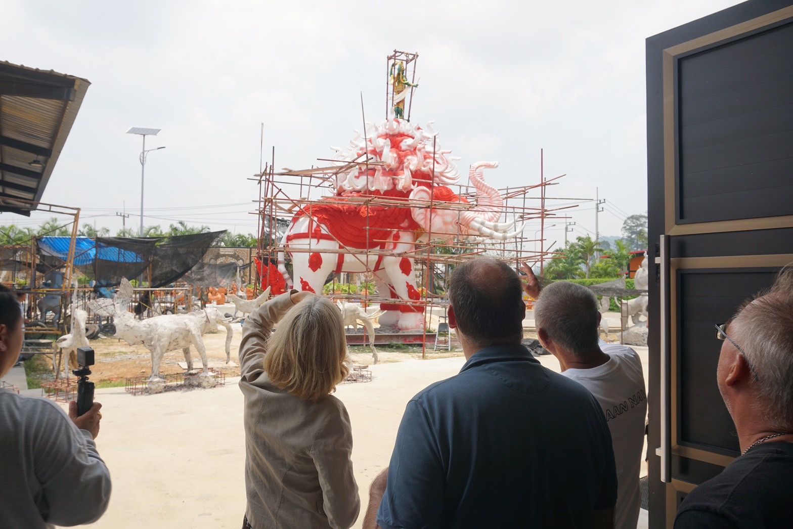 จากนั้น นายกัมพล ตันสัจจา ประธานสวนนงนุชพัทยา ได้นำท่านเอกอัครราชทูตเบลเยียม ชมสวนสวยบนเนื้อที่ 1,700 ไร่ และชมแหล่งเรียนรู้,พิพิธภัณฑ์หัวโขนและปฏิมากรรม ในวันเดียวกันนี้ ทางสวนนงนุชพัทยา ทำการอัญเชิญเทวรูปพระอินทร์ขนาด 2.20 เมตร สู่บุษบกบนหลังช้างเอราวัณ ซึ่งได้ทำการจัดสร้างปฏิมากรรมช้างเอราวัณ ที่มีจำนวน 33 เศียร ครบเป็นแห่งแรก โดยมีขนาดความสูงจากฐานถึงบุษบก 13 เมตร รวมความสูงทั้งสิ้น 15.20เมตร การจัดสร้างปฏิมากรรมอยู่ระหว่างดำเนินการ ในบริเวณแหล่งเรียนรู้ของทางสวนนงนุชพัทยา
