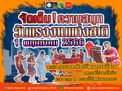 สวนนงนุชพัทยา จัดกิจกรรมวันแรงงานเพื่อให้ทุกคนมาร่วมสนุกสนาน อย่างมากมาย เช่น มหกรรมโปงลาง การแสดงของน้องช้างแสนรู้และแสดงศิลปะวัฒนธรรมร่วมสมัย ณ บริเวณลานกิจกรรมสวนลายปีกผีเสื้อ (ชมฟรี)
