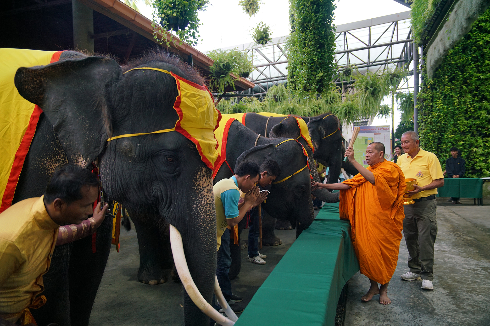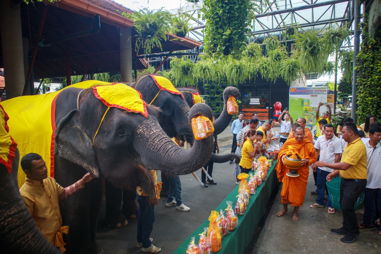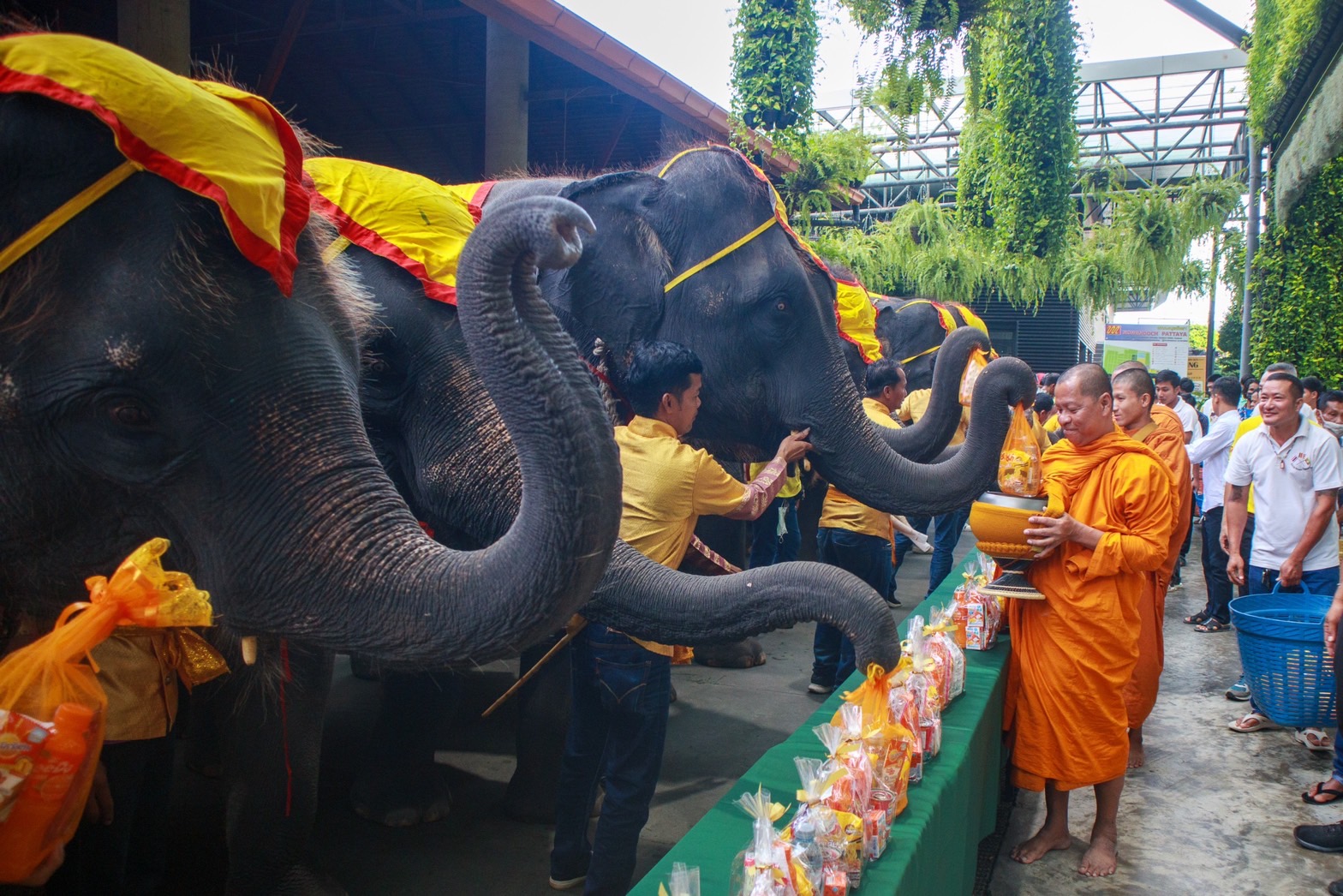 สวนนงนุชพัทยา จัดกิจกรรมน้อมรำลึกเนื่องในวันนวมินทรมหาราช รัชกาลที่ 9 นำช้าง 9 เชือก ร่วมทำบุญตักบาตร