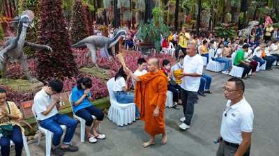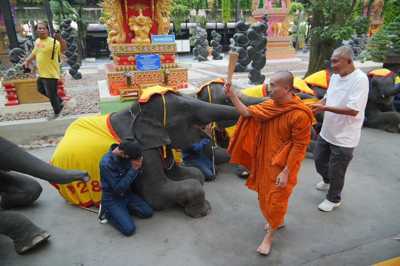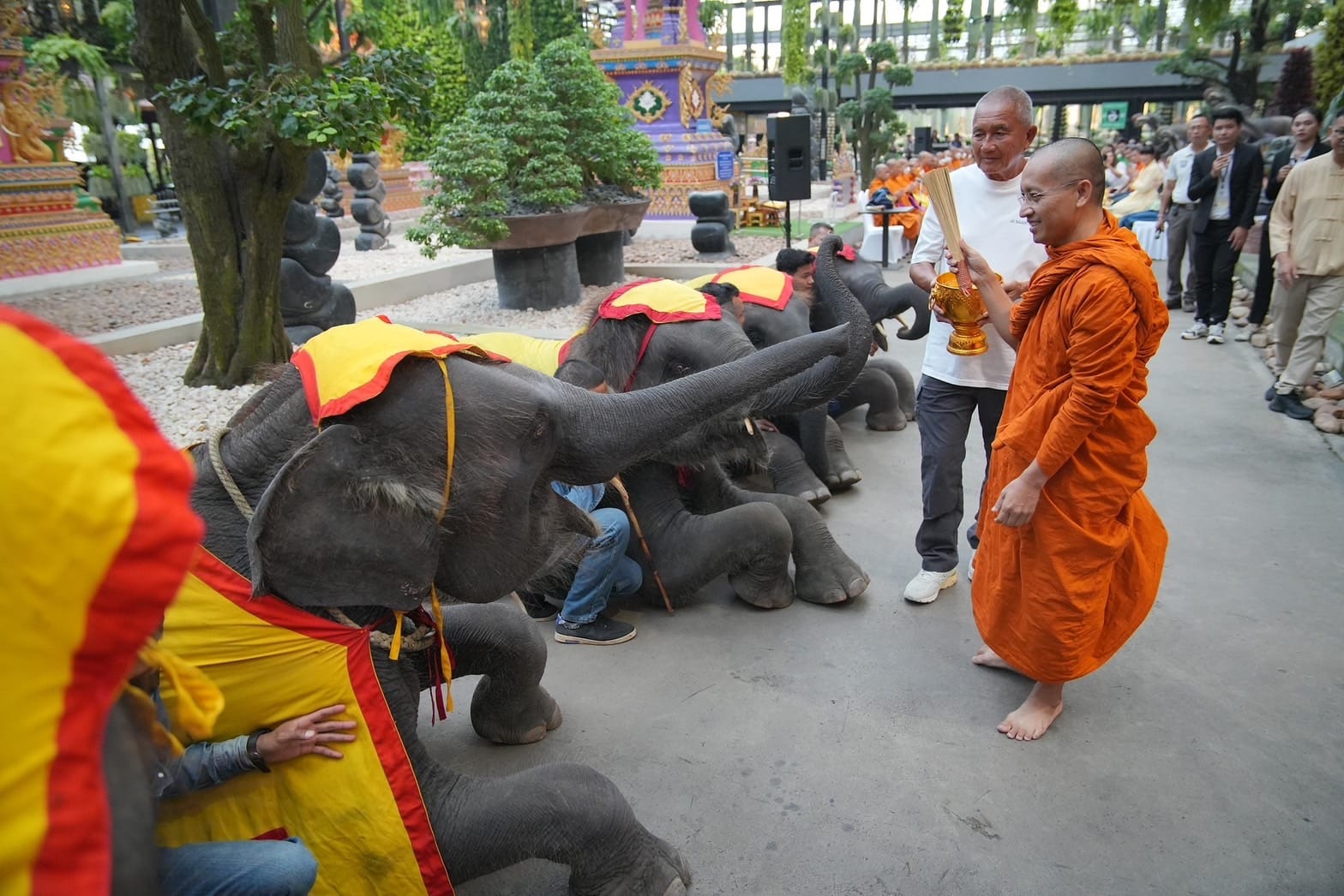 หลังจากนั้นทางพระครูปลัดวินัยทีรปัญโญ เลขานุการรองเจ้าคณะจังหวัดชลบุรีผู้ช่วยเจ้าอาวาสวัดเทพประสาท(วัดเตาถ่าน)ได้ประพรมน้ำมนต์ ให้แก่ผู้ที่มาร่วมทำบุญตักบาตร รวมถึงน้องช้างทั้ง 9 เชือก ในครั้งนี้เพื่อเป็นสิริมงคลของตัวเองและครอบครัวอีกด้วย ภายในสวนนงนุชพัทยายังมีกิจกรรมที่น่าสนใจอีกมากมายไว้ต้อนรับนักท่องเที่ยวที่เดินทางมาเยี่ยมชมในช่วงเทศกาลวันหยุดยาว โดยเปิดให้บริการทุกวันตั้งแต่เวลา 8.00-17.30 น.