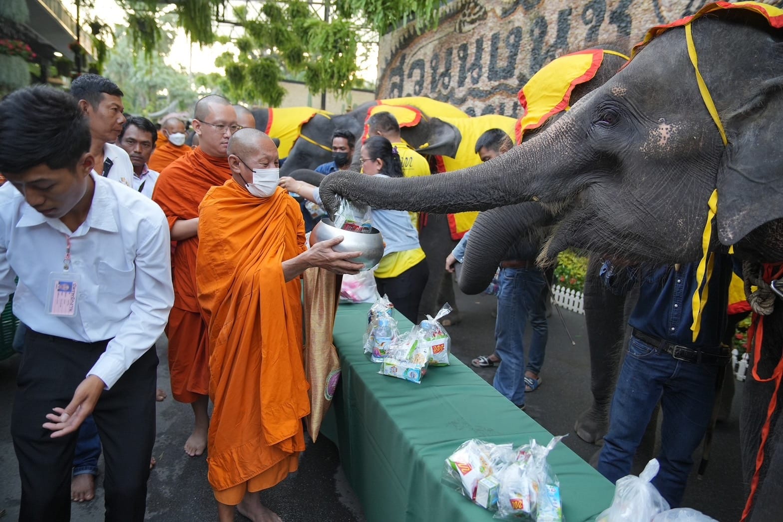 วันนี้เวลา 07.00 น. นายกัมพล ตันสัจจา ประธานสวนนงนุชพัทยา นางสาวนันทนา ตันสัจจา กรรมการบริหาร พร้อมคณะผู้บริหาร พนักงาน นักท่องเที่ยว และช้างแสนรู้ จำนวน 9 เชือก ร่วมกันทำบุญตักบาตร เนื่องในโอกาสวันขึ้นปีใหม่ประจำปี 2567 ซึ่งมีผู้มาร่วมใส่บาตรเป็นจำนวนมาก