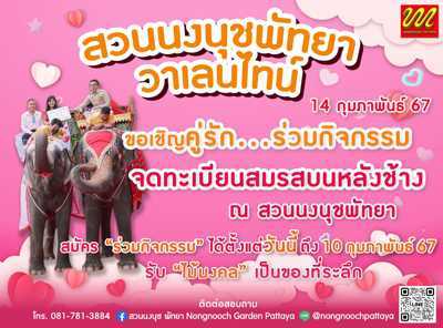 สำหรับคู่รักที่สนใจร่วมจดทะเบียนบนหลังช้าง พร้อมรับของที่ระลึกภายในงาน สมัครร่วมกิจกรรมได้แล้ว ตั้งแต่วันนี้ จนถึง 10 กุมภาพันธ์ 2567