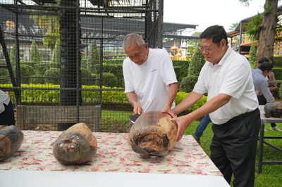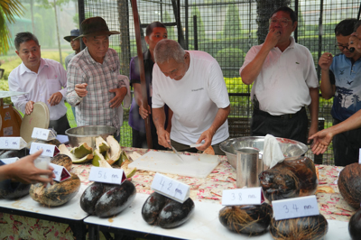 สวนนงนุชพัทยาโดย นายกัมพล ตันสัจจา ประธานสวนนงนุชพัทยา ให้การต้อนรับ คุณชาญชัย กรรณสูต อดีตกงสุลกิตติมศักดิ์ สาธารณรัฐเชเชลส์ ประจำประเทศไทย ร่วมกันปลอกมะพร้าวทะเลจำนวน17ลูก และผ่าให้ชิมเนื้อและน้ำ1ลูก แต่ในนั้นมี 2 ลูก ที่มีกะลา 2ใบ โอกาสที่จะเกิดขึ้นได้มีน้อยมากกรณีที่เกิดขึ้นมีผลมาจากการดูแล ของผู้เชี่ยวชาญด้านพฤกษศาสตร์สวนนงนุชพัทยา วันนี้รวมปลอกได้ 19 ลูก ซึ่งมีมูลค่าลูกละ100,000บาท รวมมูลค่าประมาณเกือบ 2 ล้านบาท