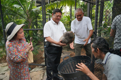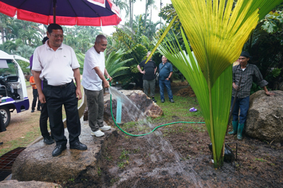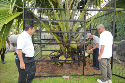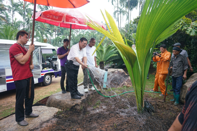 หลังจากนั้นทางคณะได้เดินทางไปปลูกต้นมะพร้าวทะเลยังบริเวณสวนปาล์มโลกของสวนนงนุชพัทยา สำหรับมะพร้าวทะเลหรือมะพร้าวแฝด จัดเป็นปาล์มชนิดหนึ่ง มีถิ่นกำเนิดอยู่บนเกาะเล็กๆ ในหมู่เกาะเชเซลล์ ในมหาสมุทรอินเดีย ปัจจุบันภายในสวนนงนุชพัทยา มีมะพร้าวทะเล 33 ต้น และเป็นต้นกล้าอีก 41 ต้น จำนวนต้นมะพร้าวทะเลและต้นกล้าในสวนนงนุชพัทยารวมทั้งสิ้น 74 ต้น