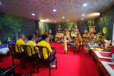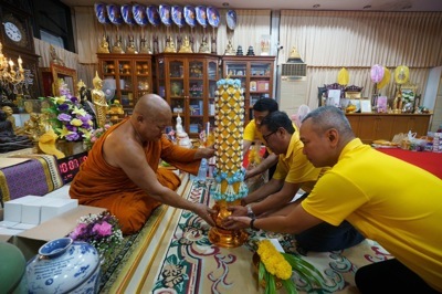 นายกัมพล ตันสัจจา ประธานสวนนงนุชพัทยา มอบหมายให้ตัวแทนนำเทียนพรรษาถวายวัด เป็นประเพณีเพื่อใช้จุดในโบสถ์ตลอดพรรษา 3 เดือน โดยเริ่มตั้งแต่วันเข้าพรรษาจนถึงวันออกพรรษา การถวายเทียนเพื่อเป็นตัวแทนของแสงสว่าง เพิ่มพูนปัญญา หูตาสว่างไสว และให้พระภิกษุสงฆ์ได้ใช้ประโยชน์