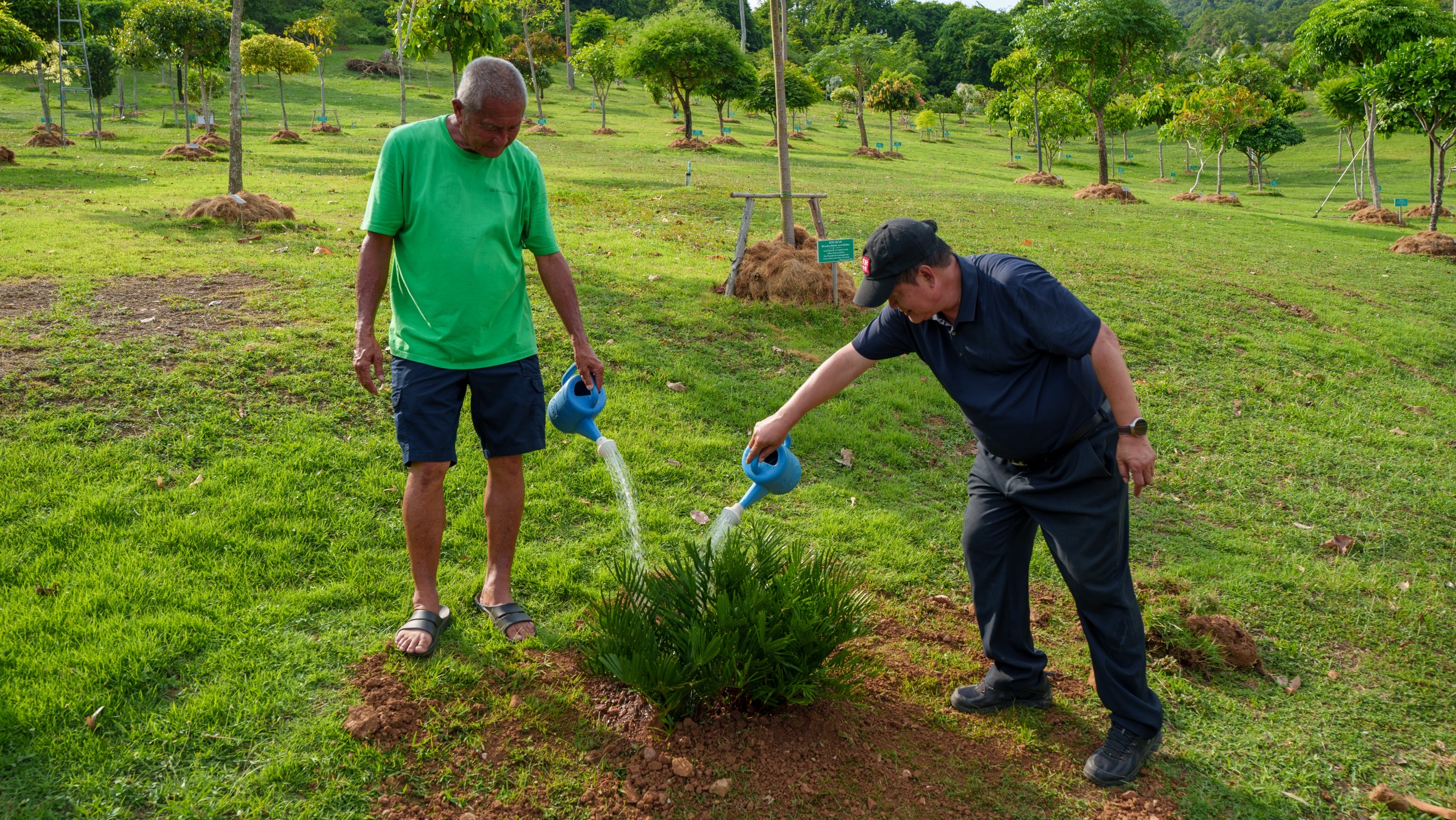 ทั้งนี้เพื่อเป็นการแสดงให้เห็นถึงความร่วมมือและมิตรภาพที่ดีต่อกัน คุณกัมพล ได้เชิญนาย Zhang Shou zhou และDr. Cheng Xinร่วมกันปลูกต้นมะพร้าวทะเลในสวนปาล์มโลก และปรงซาเมีย อินทิกริโฟเลีย บริเวณสวนรุกชาติเชิงเขาบรรไดกฤษ ซึ่งเป็นโครงการที่ทางสวนนงนุชพัทยาได้ขออนุญาติจากกรมป่าไม้ เพื่อทำสวนรุกขชาติ ให้แก่ประเทศไทยรวบรวมพันธุ์ไม้และปลูกไม้ยืนต้นชนิดต่างๆที่มีมูลค่าและหายากจากทั่วทุกมุมโลกมาปลูกไว้ ซึ่งค่าใช้จ่ายและค่าดำเนินการและการปลูกพันธุ์ไม้ต่างๆ ทั้งหมดอยู่ภายใต้การดูแลบำรุงรักษาโดยสวนนงนุชพัทยา