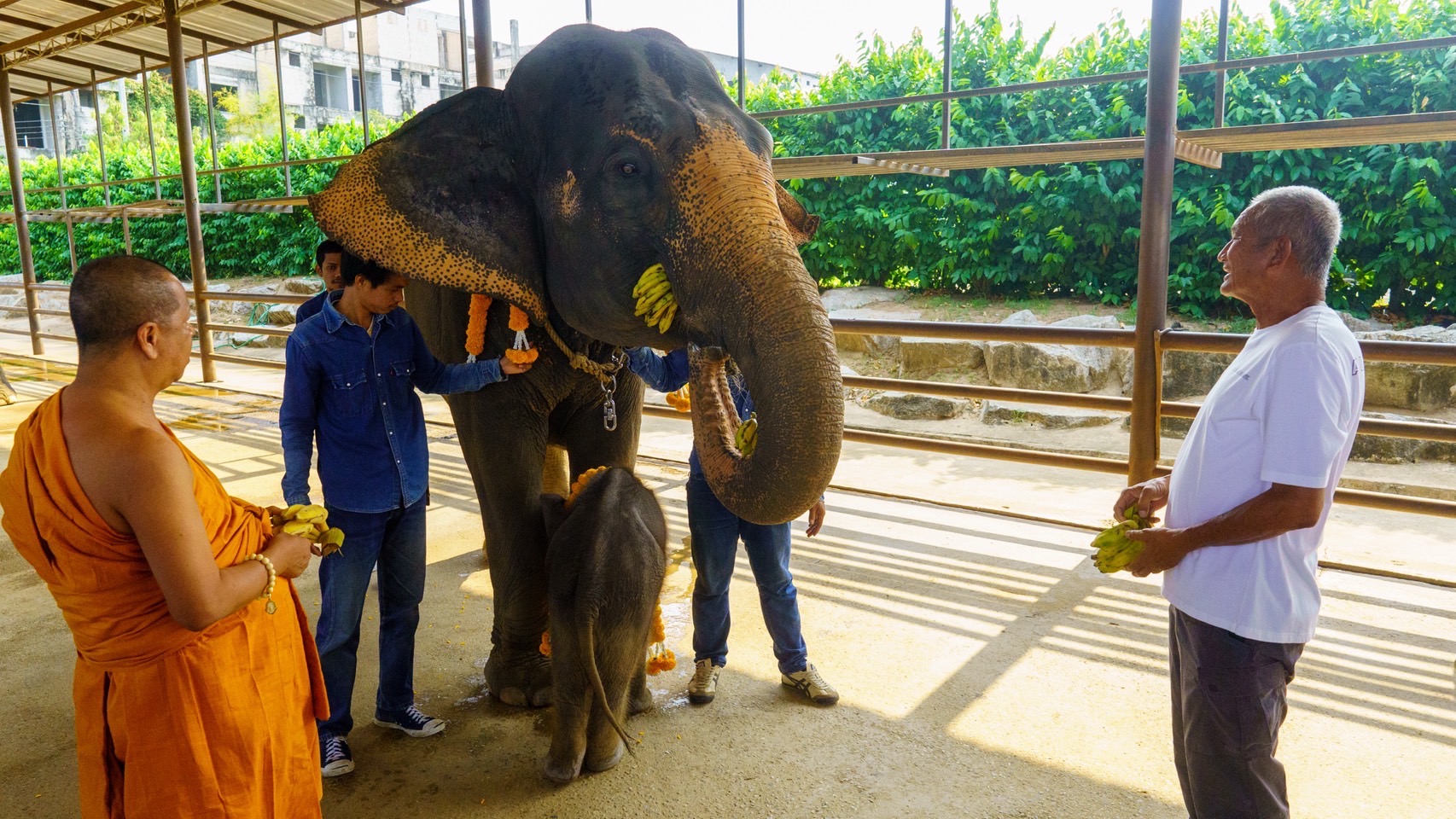 วันนี้เวลา 9.00 น.นายกัมพล ตันสัจจา ประธานสวนนงนุชพัทยาได้จัดพิธีรับขวัญช้างขึ้นที่ปางช้างสวนนงนุชพัทยาได้นิมนต์พระครูเกษมกิตติโสภาณ เจ้าคณะตำบลภูตาหลวง วัดสามัคคีบรรพตมาประกอบพิธีรับขวัญน้องช้าง ตามประเพณีของสวนนงนุชพัทยาเป็นการตอนรับสมาชิกใหม่เข้าสู่ป้างช้าง
