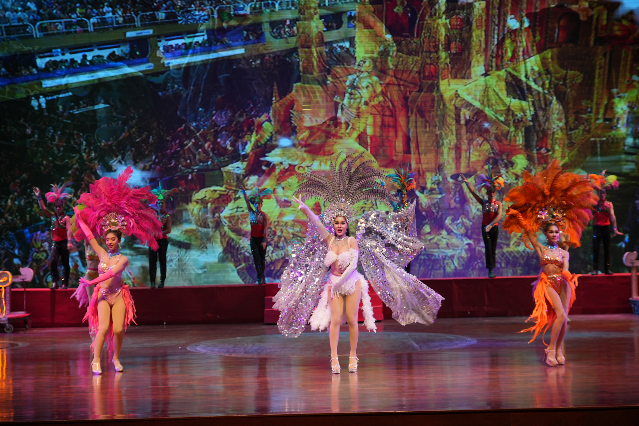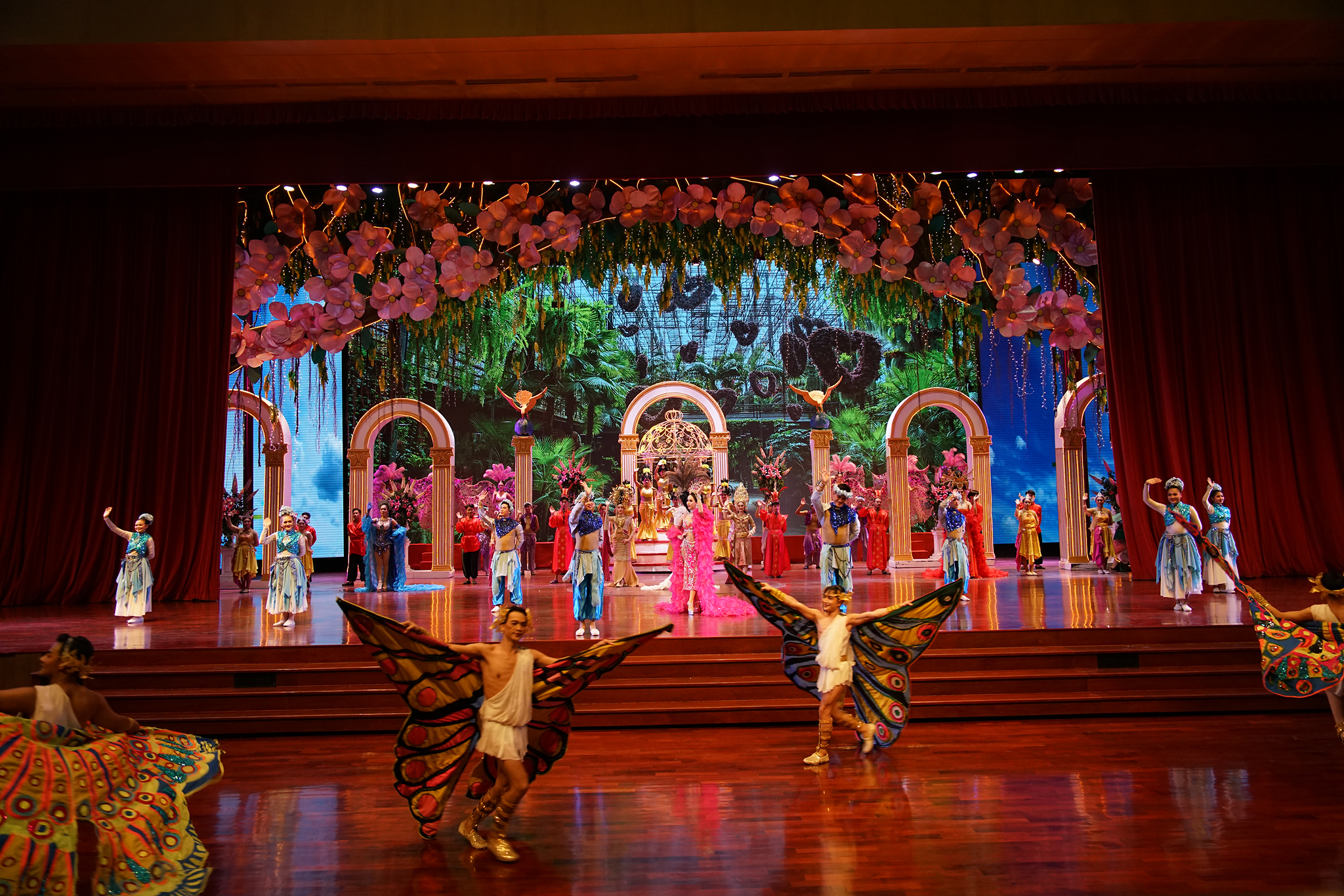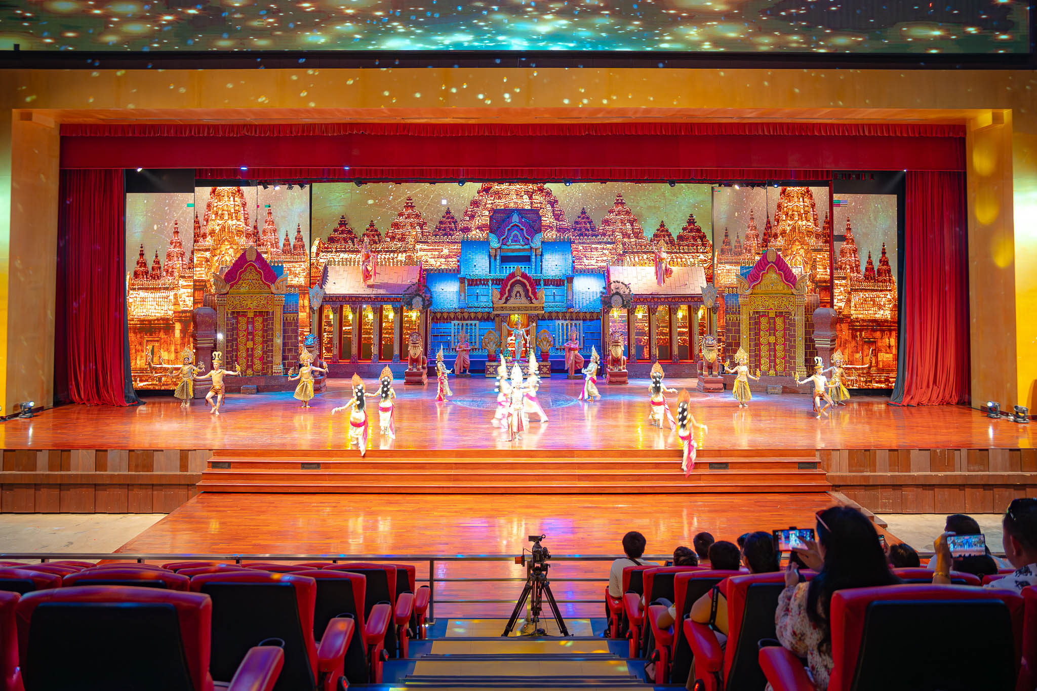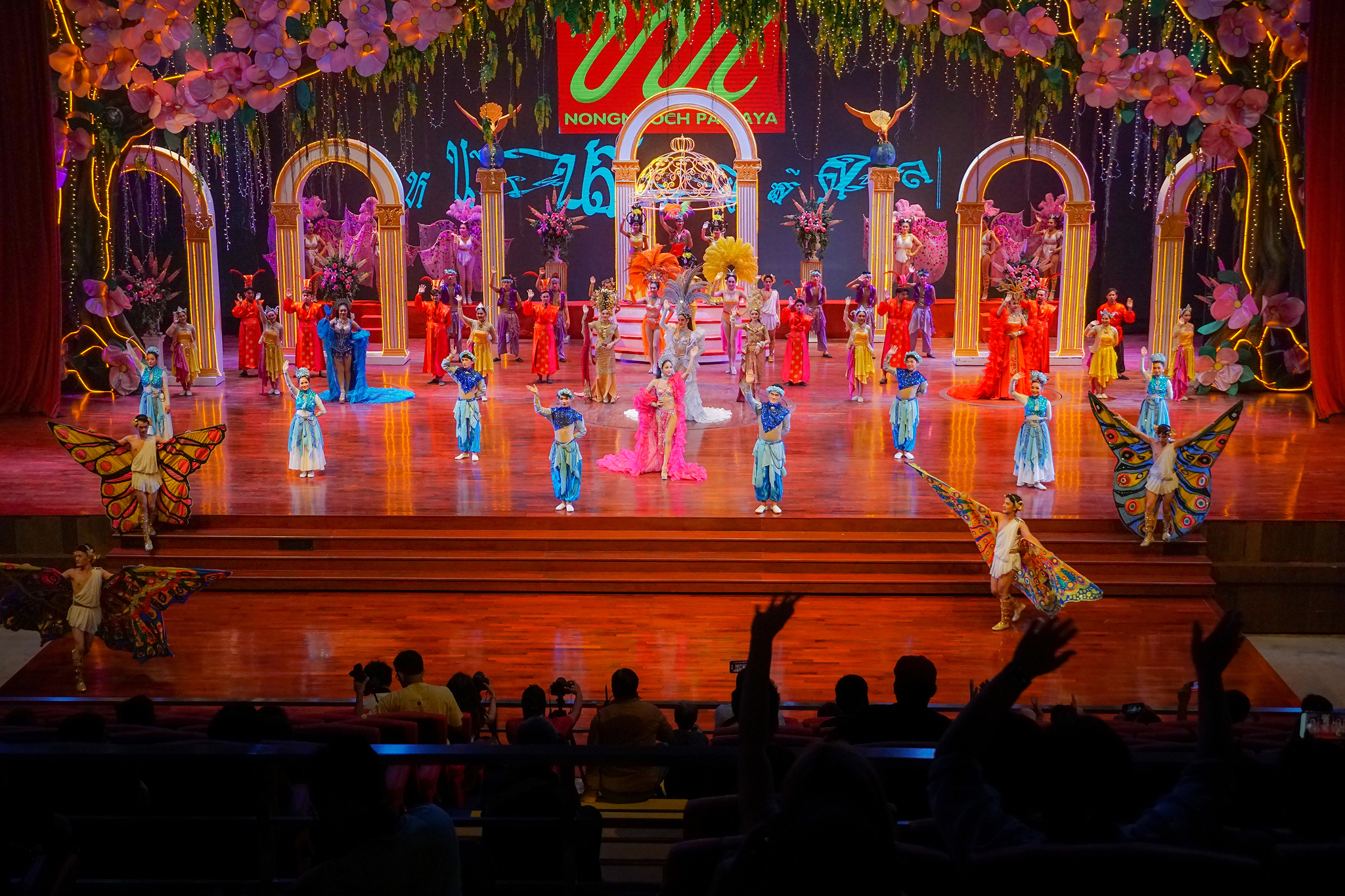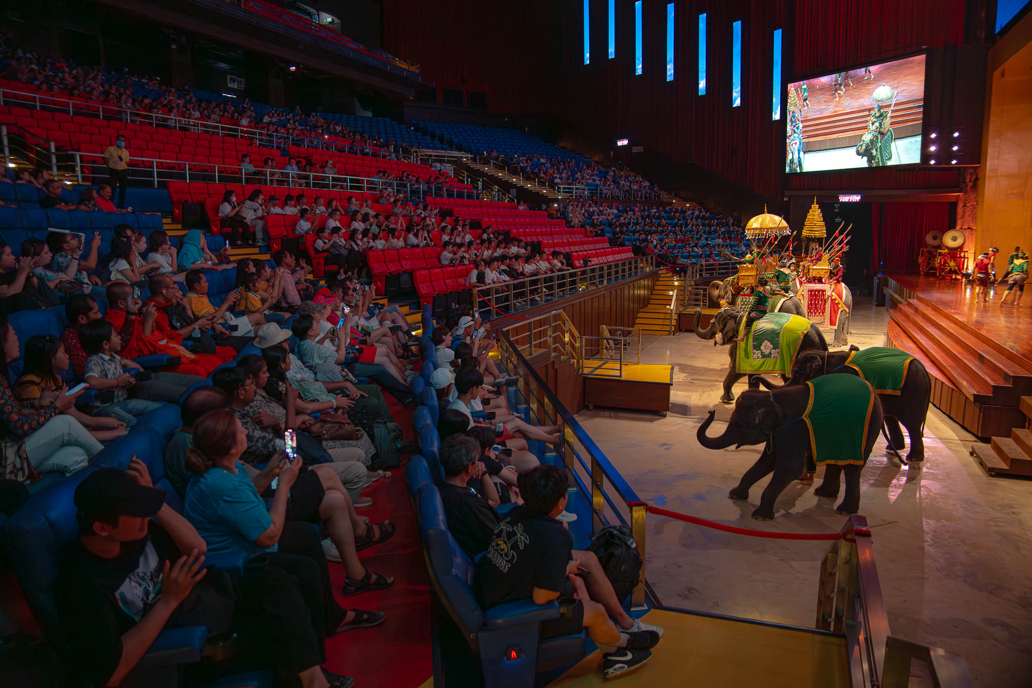 ม่านเวทีอันสวยงามถูกเปิด ชมความงดงามของการแสดงศิลปวัฒนธรรมไทยร่วมสมัย สนุกสนานด้วยระบำกลองยาว ลีลาสุดอ่อนช้อยด้วยท่าร่ายรำระบำสี่ภาค ระบำเทพนฤมิต สลับฉากหลังอันยิ่งใหญ่ตระการตา ต่อด้วยศิลปะการต่อสู้ที่เข้มแข็งดุดัน พร้อมโชว์พลังมหกรรมกลอง ปิดท้ายด้วยการแสดงศิลปะการต่อสู้เชิงประวัติศาสตร์ที่เลื่องลือยุทธหัตถี นำแสดงโดยช้างแสนรู้ สู้รบบนเวทีของโรงละครมาตรฐานระดับโลก ที่คุณต้องตะลึง