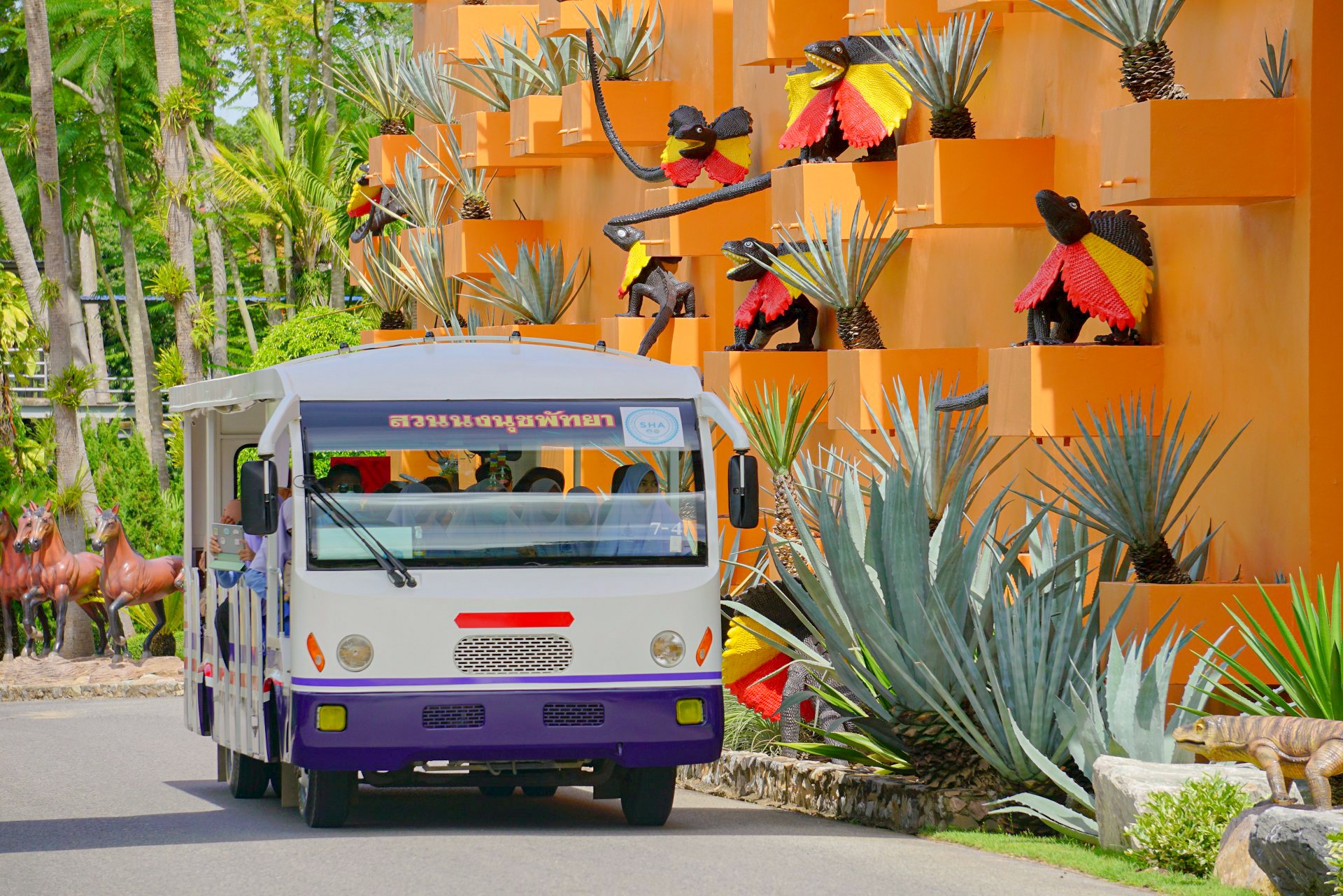 รถรางชมทิวทัศน์ จะทำการจอดใกล้กับหุบเขาไดโนเสาร์ สาเหตุที่ต้องจอดรถ ณ ที่แห่งนี้ เนื่องจากเป็นจุดสำคัญที่แปลกและที่สวยที่สุด นั่่นคือ จุดชมวิวบนยอดเขาของสวนฝรั่งเศส และหุบเขาไดโนเสาร์ศูนย์รวมไดโนเสาร์หลายสายพันธุ์ที่มีมากที่สุดในโลก สวนป่าหินอันแปลกตา และสวนตะบองเพชรนานาพันธุ์พร้อมด้วยเสียงคำรามจากไดโนเสาร์ผู้เฝ้าสวนอย่างน่ากลัว ท้ายสุดชมหินแปลกกับรูปแบบที่น่าตะลึง เที่ยวจนเหนื่อยไม่ต้องกังวลเพราะได้เปิดให้บริการร้านขายของห้องแอร์เย็นฉ่ำไว้บริการทั้งเครื่องดื่ม อาหารเบาๆและของฝากกลับบ้านอีกหลายชนิด