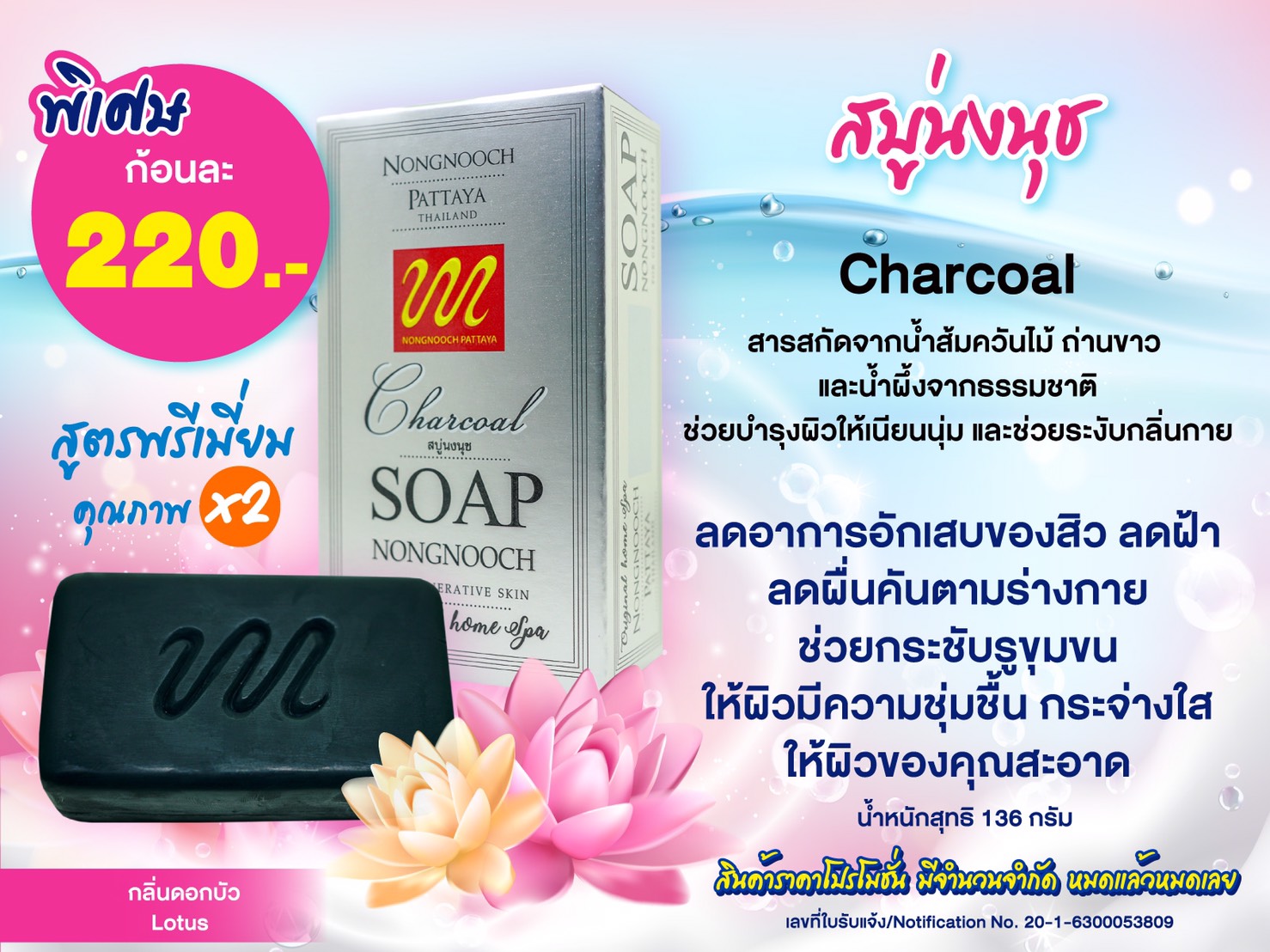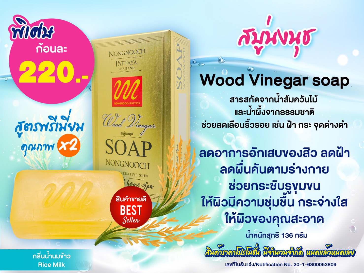 สรรพคุณ : ลดอาการอักเสบของสิว ลดผื่นคันตามร่างกาย ช่วยกระชับรูขุมขนให้ผิวมีความชุ่มชื้น กระจ่างใสให้ผิวของคุณสะอาดและมีสุขภาพดี